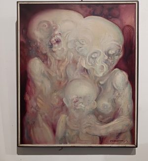 ZENG LI plasticien chinois né en 1961 – tecnique mixte sur toile 75 x 70 cm datée 1991- CHINE
