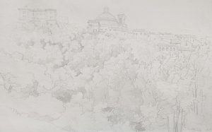 École romantique française du début du XIXe siècle Vue d’Ariccia, 1828, dessin au crayon