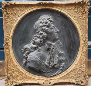 Grand Médaillon En Plâtre Patiné , Profil De Louis XIV