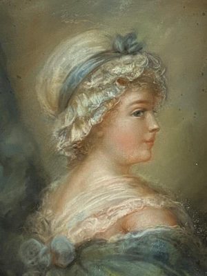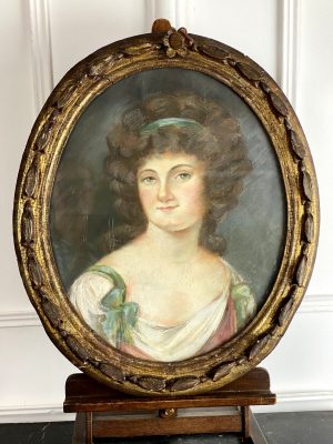 Pastel Ancien Fin XVIIIe Oval Dans Son Cadre D Epoque En Bois Sculpté ( Portrait De Femme )
