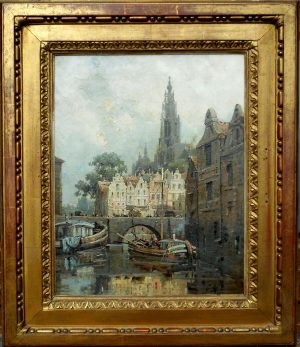 Gustave MASCART (1834-1914) le port d’ANVERS – BELGIQUE – HST 40x32cm