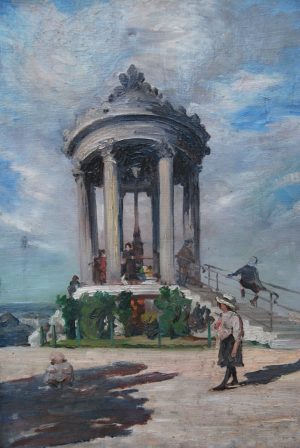 Le Kiosque, Huile Sur Toile Signée