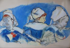 Dessin Au Pastel : Trois Bretonnes , D Après Paul Gauguin