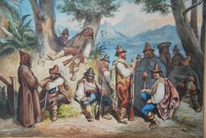 Aquarelle Le Repos Des Bandits Italiens , Attribuée à Antoine Alphonse Montfort Vers 1860