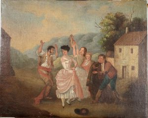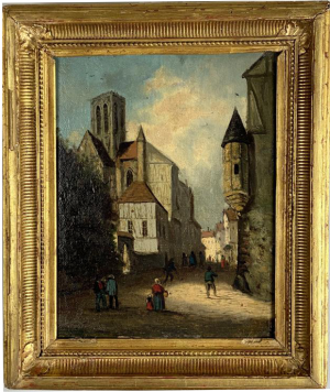 Tableau / Huile Sur Panneau Du Début 19eme ( Scène Animée ) Avec Bel Encadrement