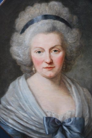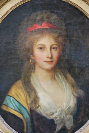 Tableau / Huile Sur Toile Du XVIIIe Representant Une Dame Avec Cadre d’Epoque