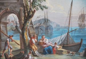 Paysage scène de port école française du XVIII