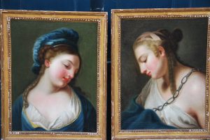 Paire De Portraits De Femmes En Vestale Suiveur De Vien , Fin XVIII