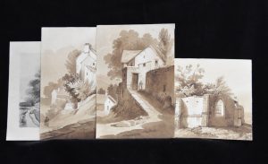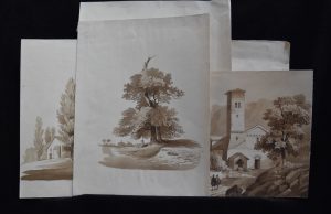 Ecole française vers 1840, Ensemble de sept dessins de paysage, lavis
