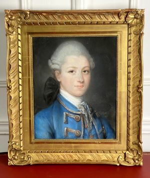 TABLEAU / PASTEL SOUS VERRE ECOLE DU XIXe » PORTRAIT D HOMME EN HABIT BLEU «