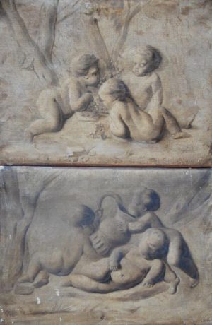 Paire De Petites Grisailles Putti Dans Le Gout De Sauvage