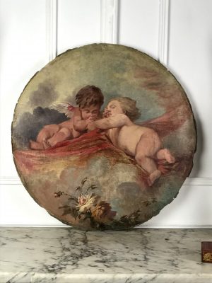 Peinture Signée XVIIIe Huile Sur Toile Marouflée Sur Du Stuc A Decor De Putti