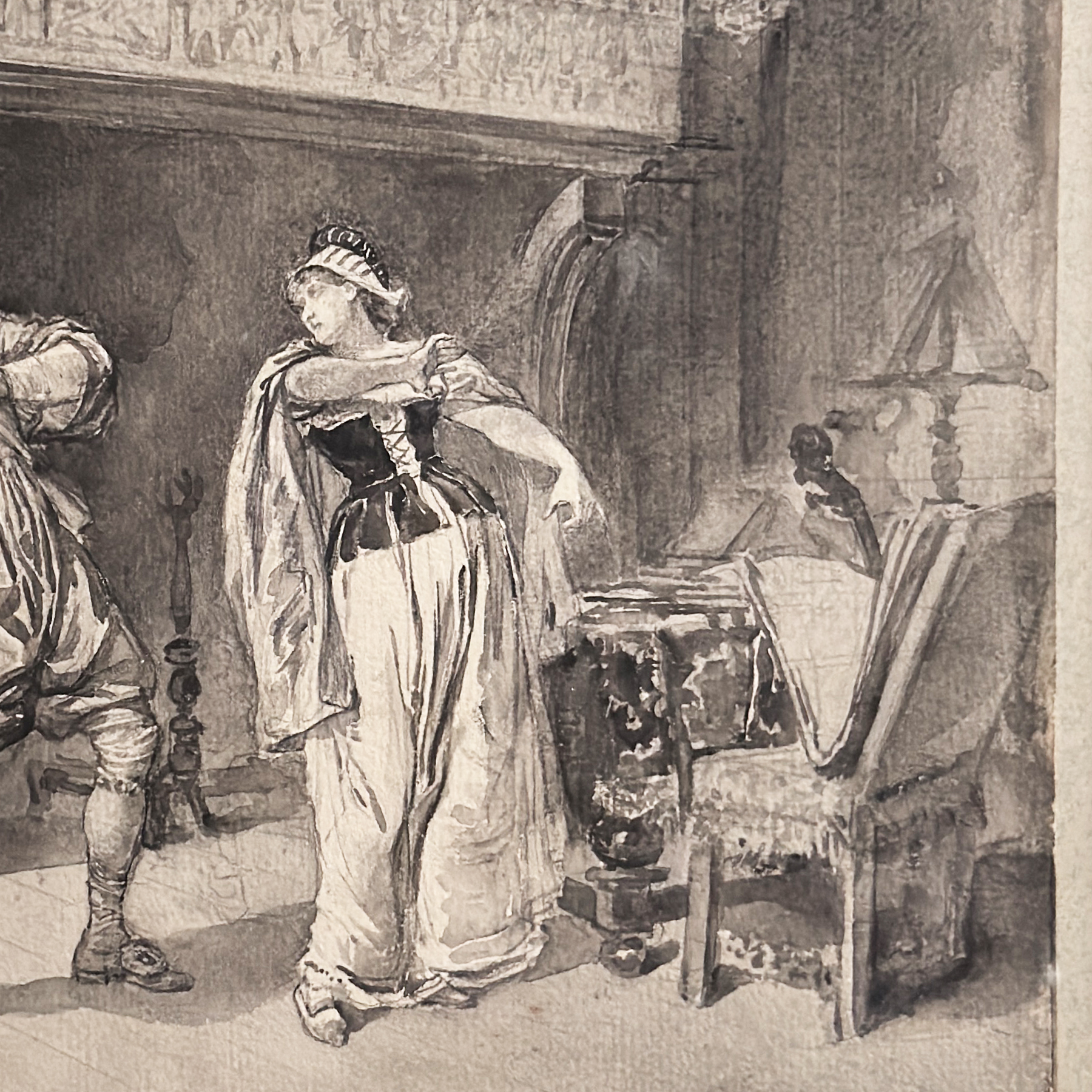 Cette feuille est un ouvrage d’une qualité exceptionnelle par Adolphe Lalauze, l’un des plus grands illustrateurs et graveurs français de la fin du XIXᵉ siècle. Exposant régulier au Salon de Paris à partir de 1872, lauréat de médailles en 1876 et 1878, et fait chevalier de la Légion d’honneur, Lalauze illustra nombre des grands monuments littéraires de son temps. Ce dessin appartient à sa célèbre série consacrée à Gil Blas, réalisée vers 1880 pour l’édition bibliophile publiée à Paris par Édouard Rouveyre (Suite de vingt et une estampes pour servir à l’illustration de… Histoire de Gil Blas).
