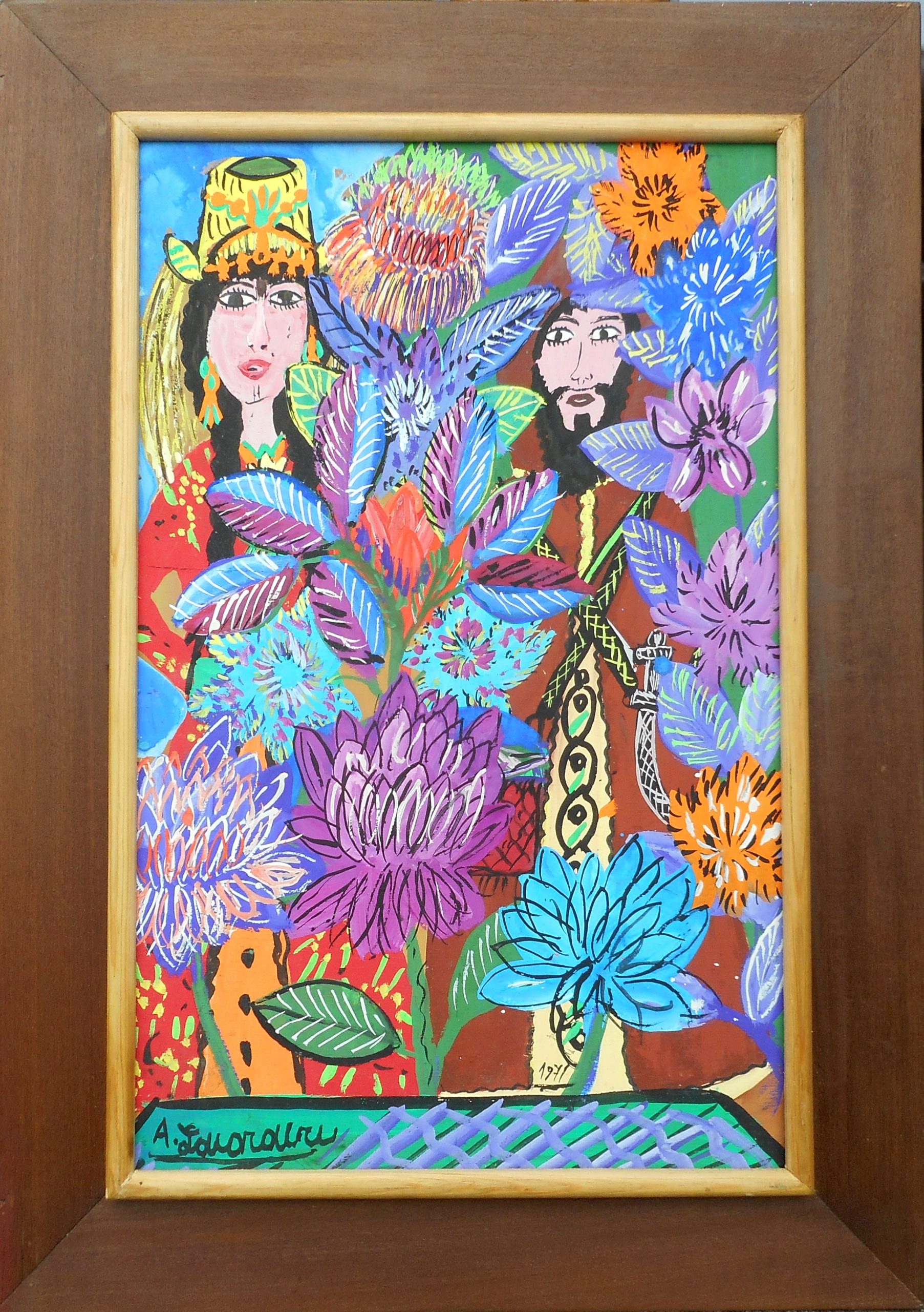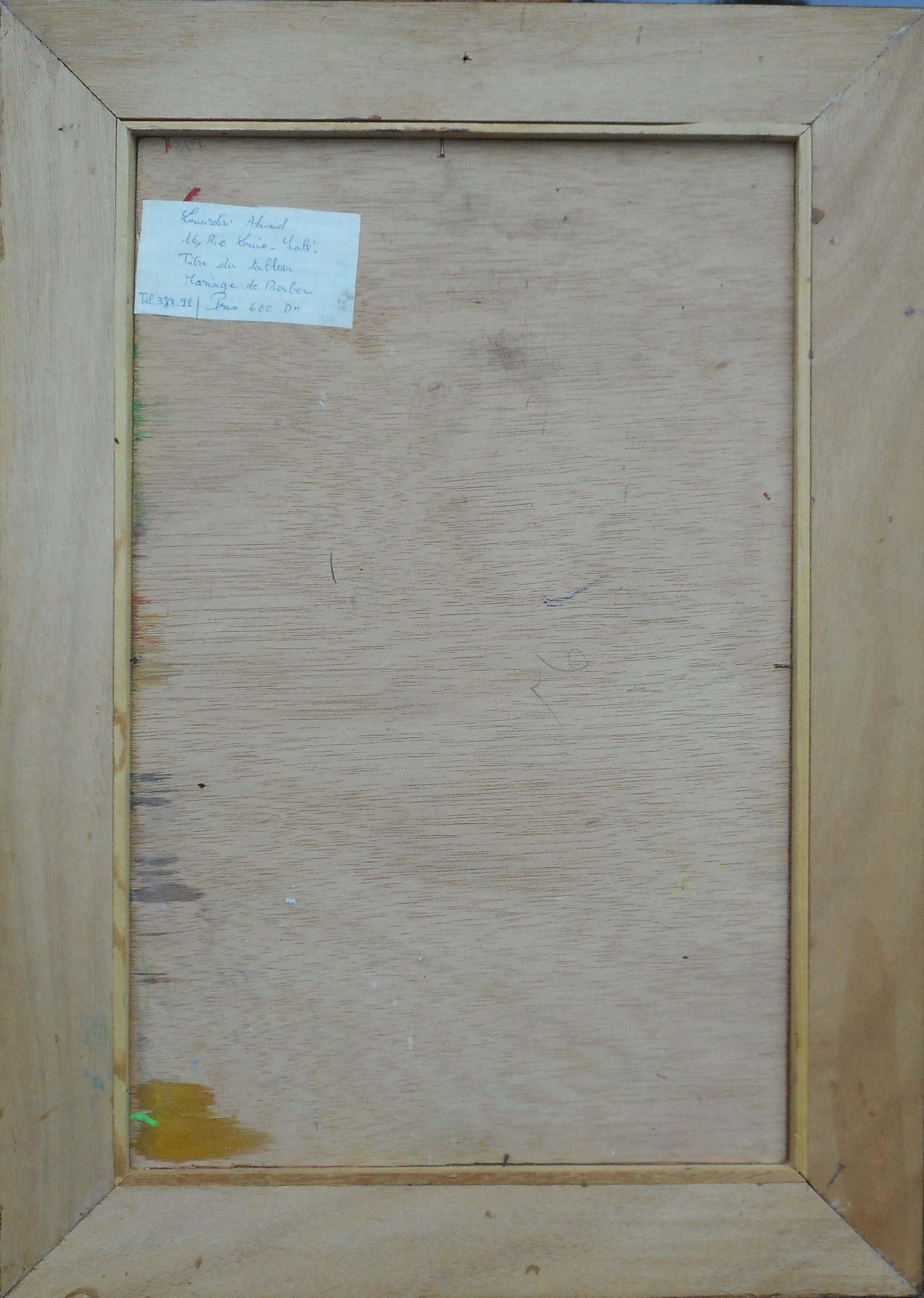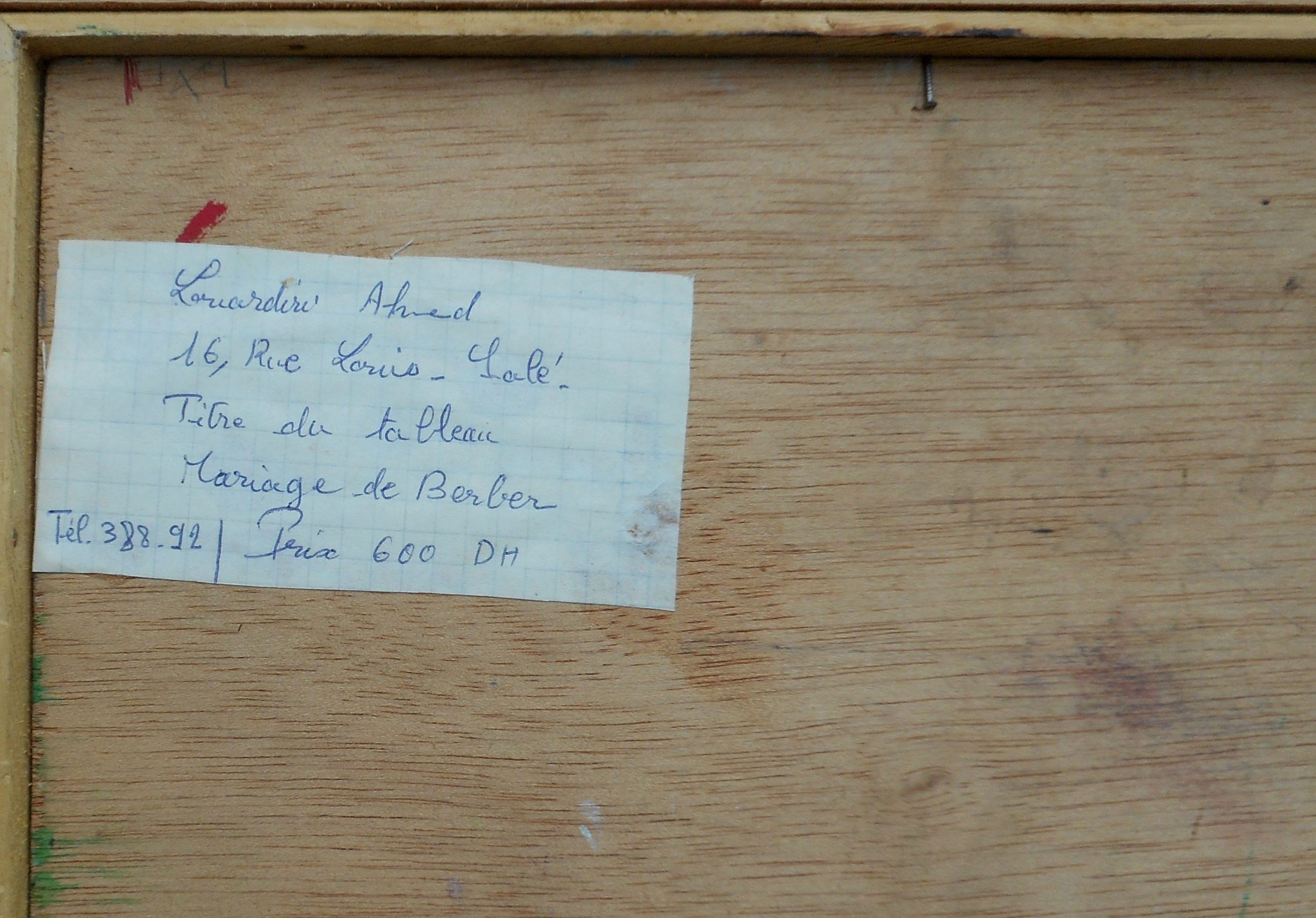 Superbe gouache sur panneau 49,5x32cm (62x44cm encadrée) signée du grand artiste marocain AHMED LOUARDIRI (1928-1974) , datée 1971 et titrée au dos « mariage berbère »