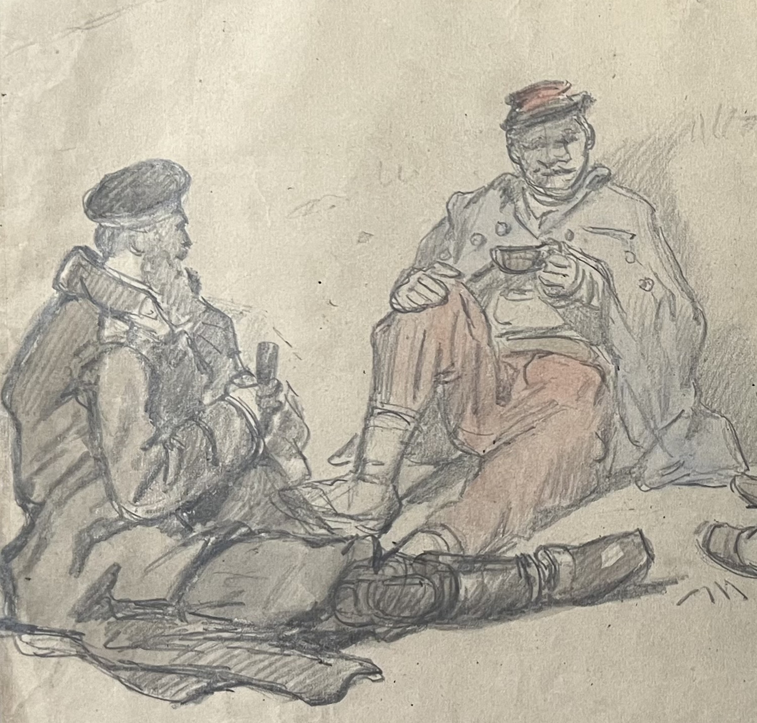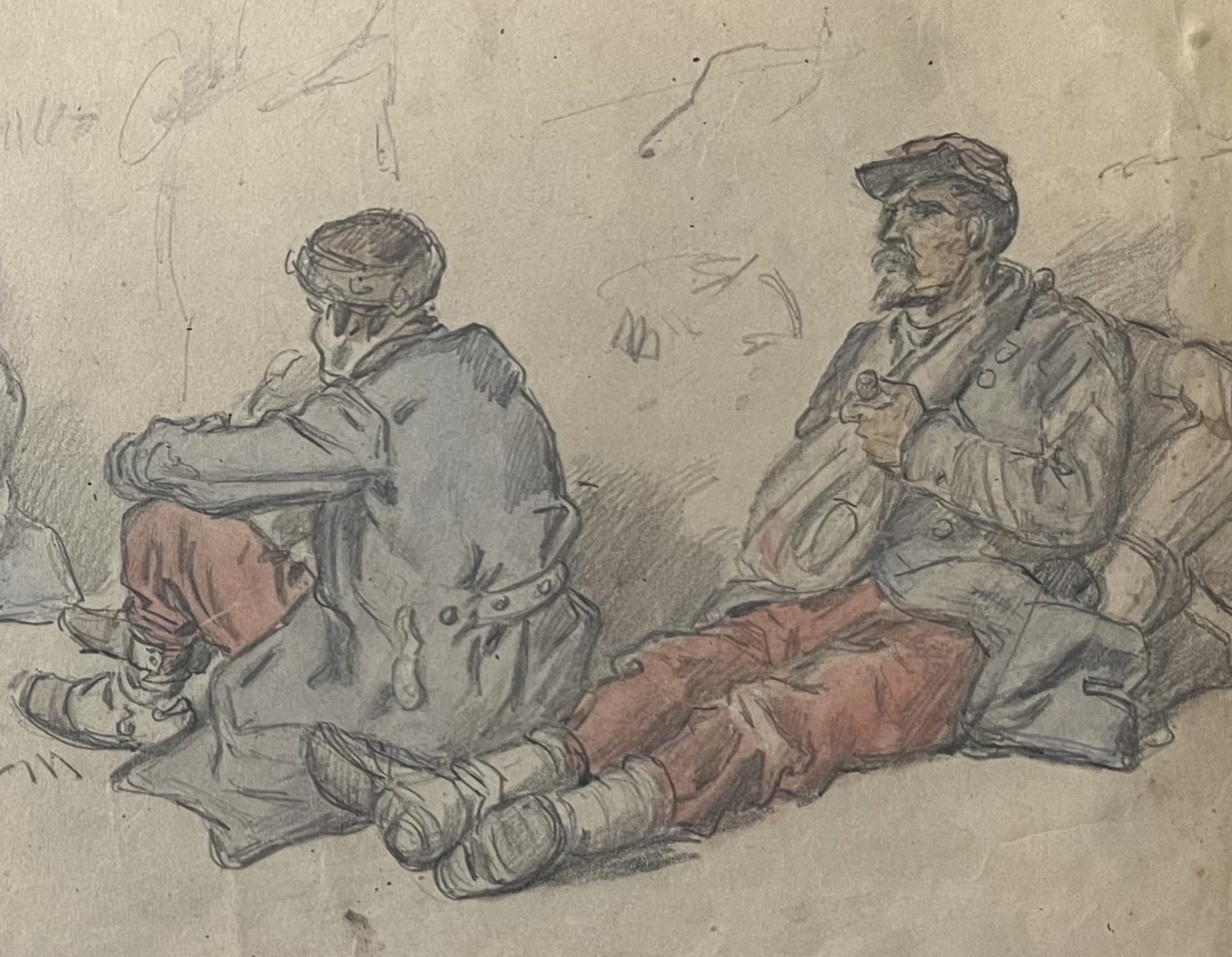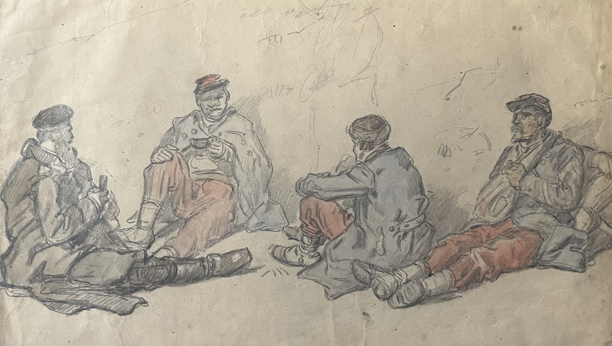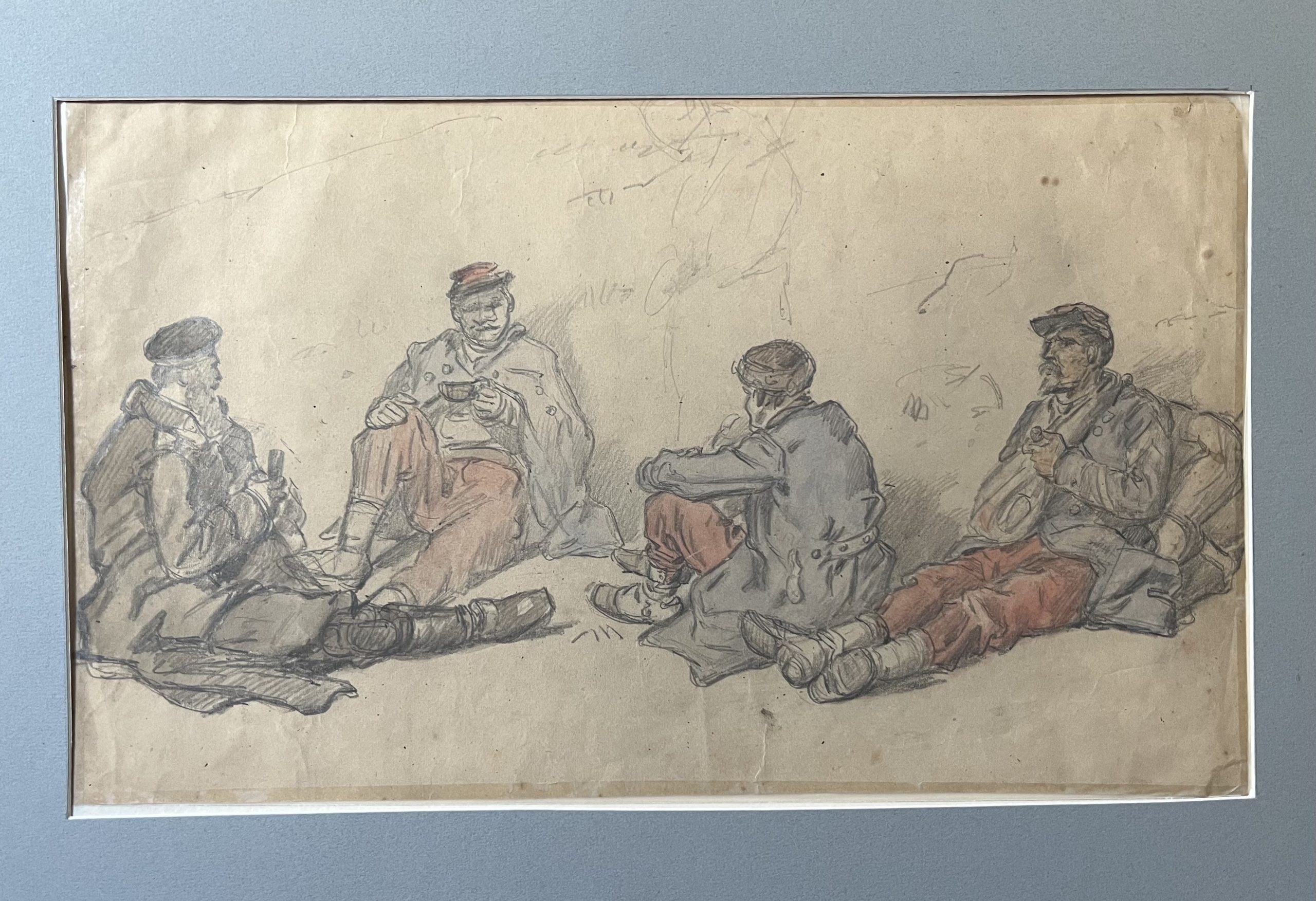 Auguste Gardanne (1840-1890) Soldats au repos, Guerre de 1870, aquarelle