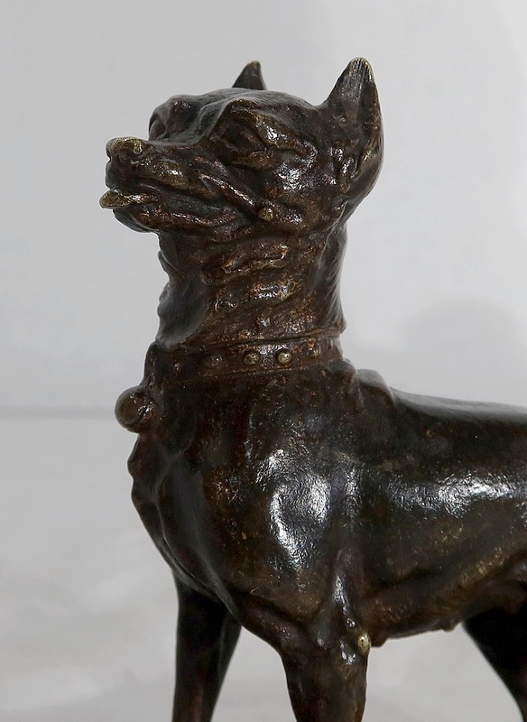 Signé sur la terrasse, ce bronze empreint de réalisme ravira les amoureux des chiens.