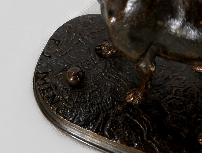 Petite épreuve ancienne de Pierre-Jules Mêne (1810-1879), pionnier de la sculpture animalière spécialisé dans les bronzes de petite taille. Cet artiste talentueux fut unanimement reconnu pour la perfection de ses productions.