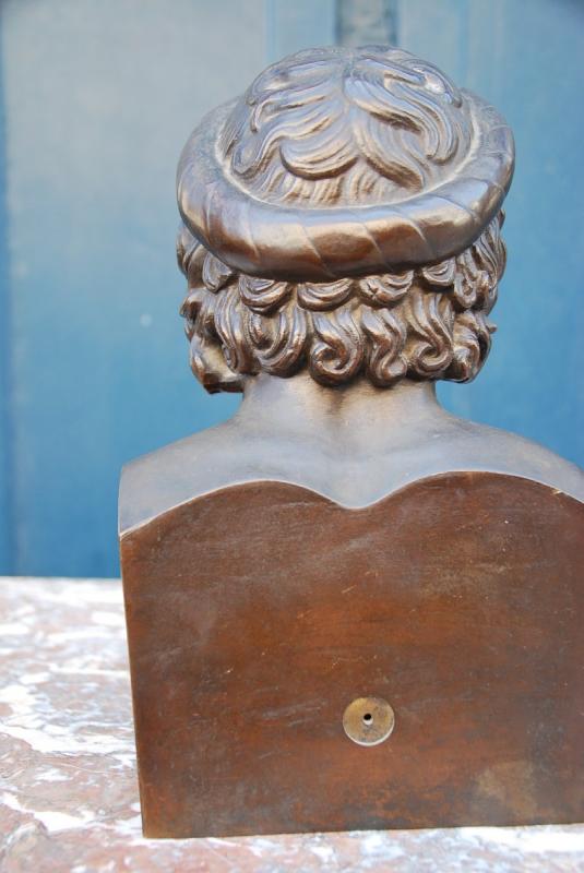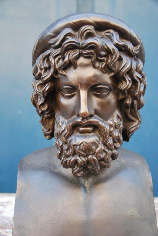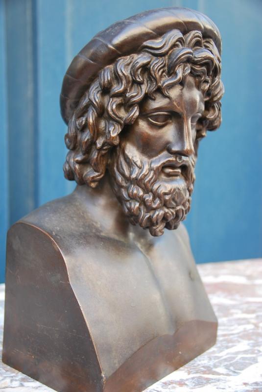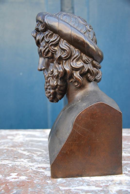 Beau buste d Homère représenté en Hermès , aux cheveux bouclés , couronné d un tortil