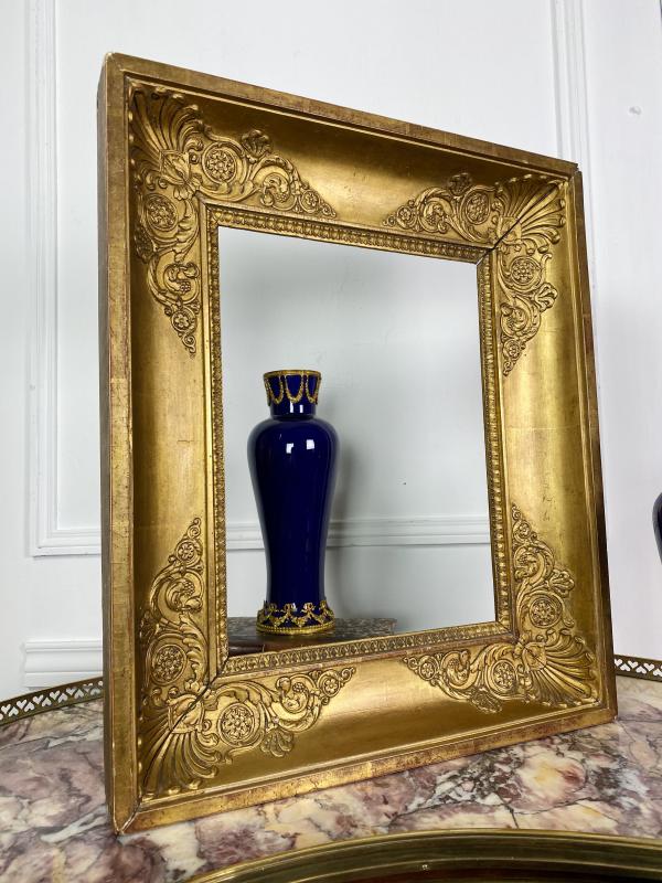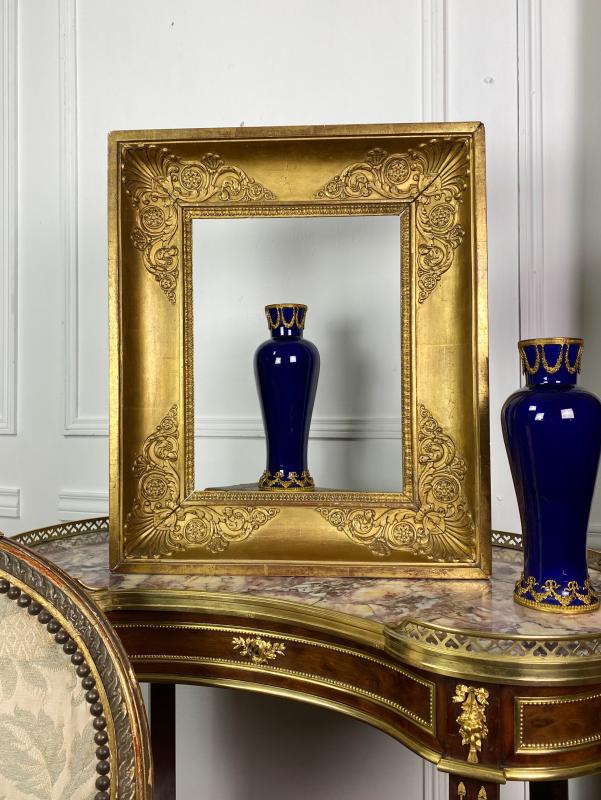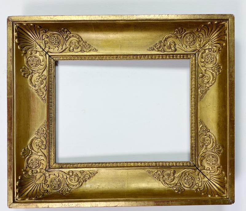 Cadre à Palmettes Dorées D’époque Empire Restauration (33,5×25 feuillure)