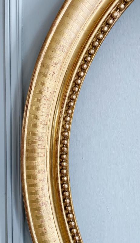 Cadre ovale du XIXe en bois doré à la feuille d’or. De style Louis XVI.