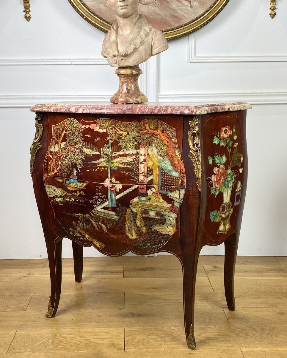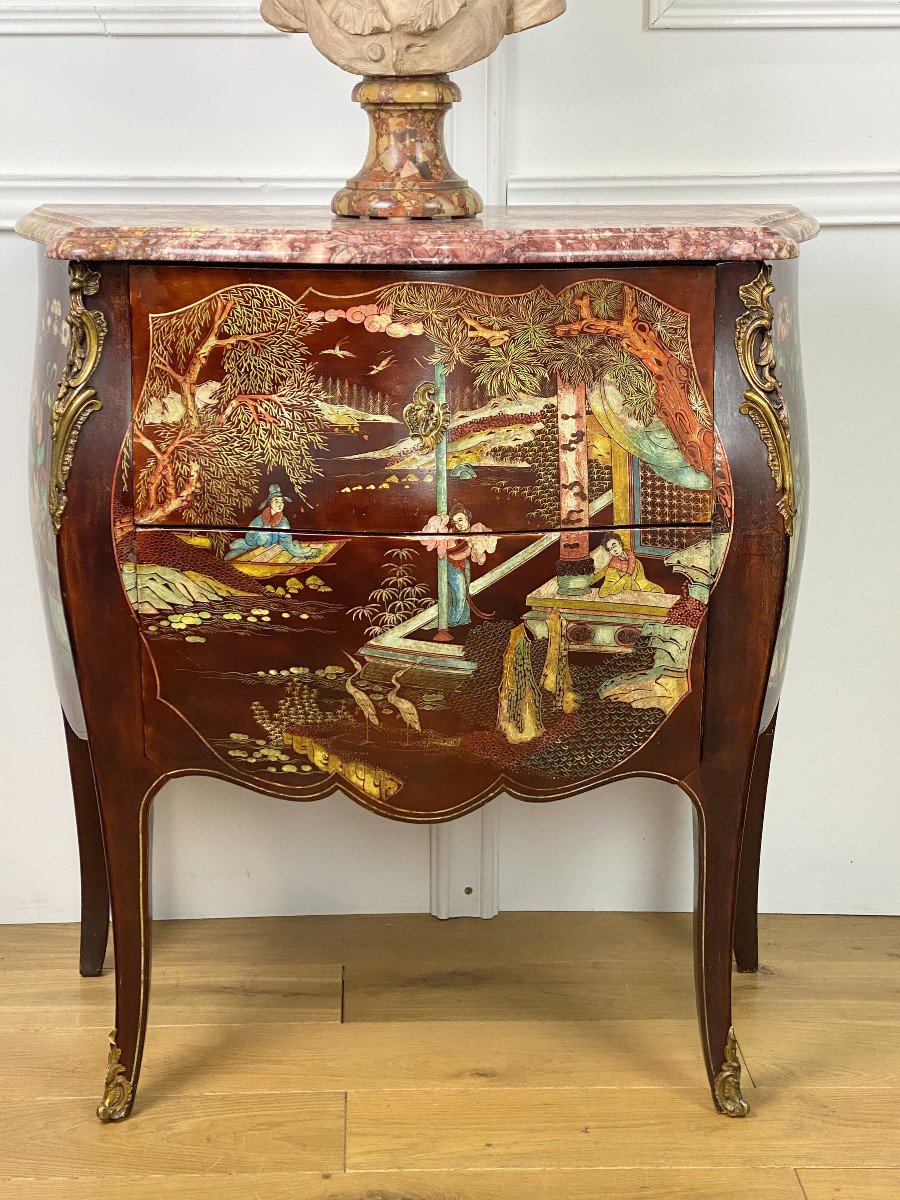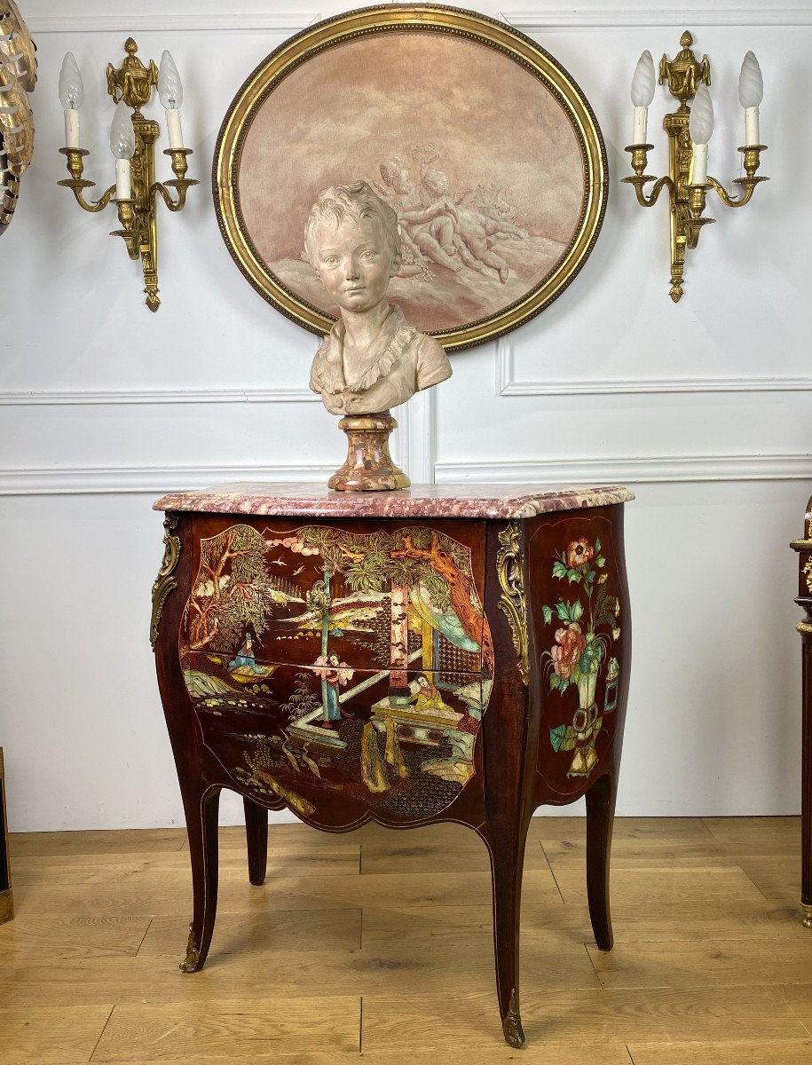 Commode Galbée En Laque De Coromandel Ornée De Bronze Doré Style Louis XV
