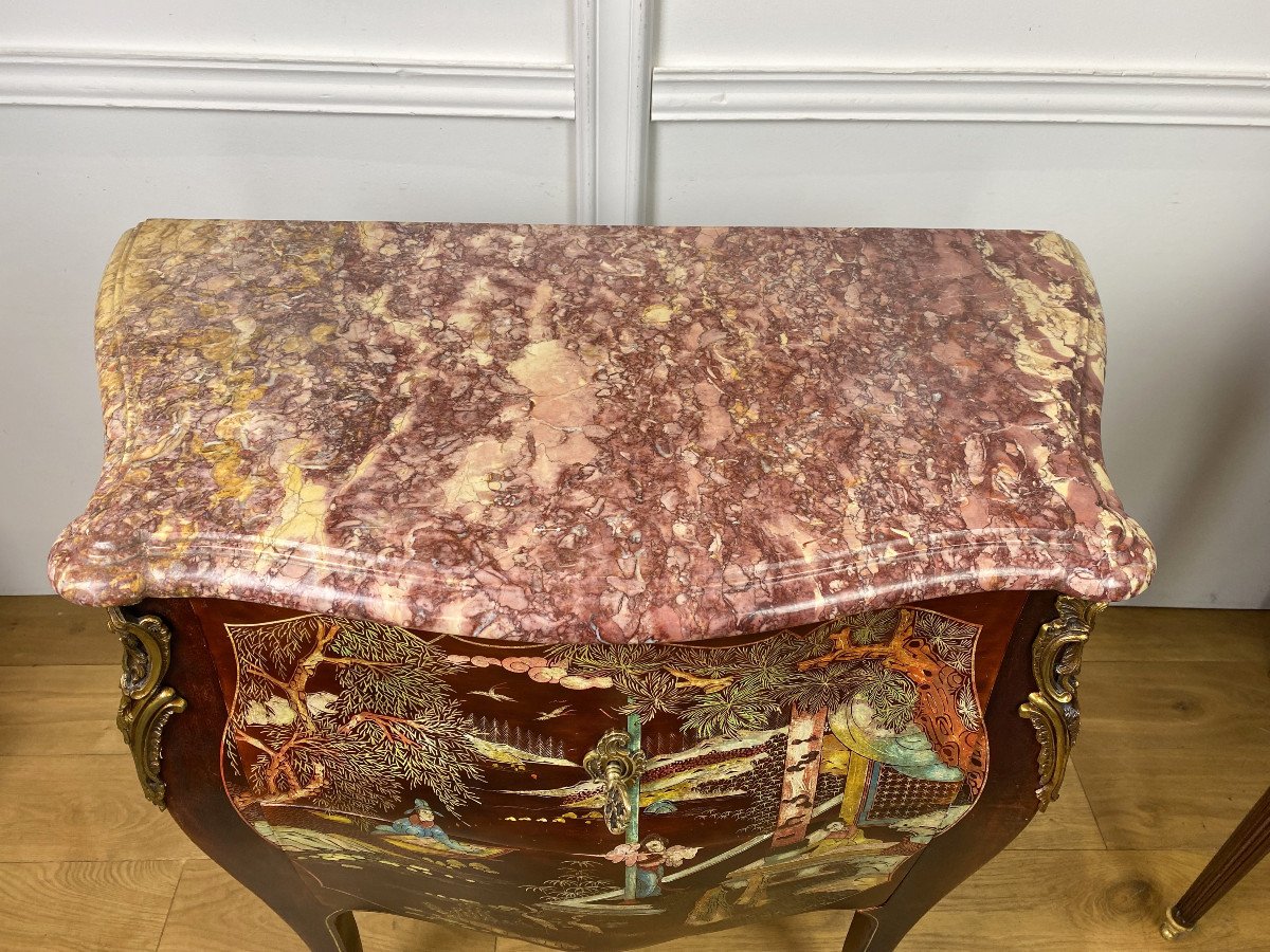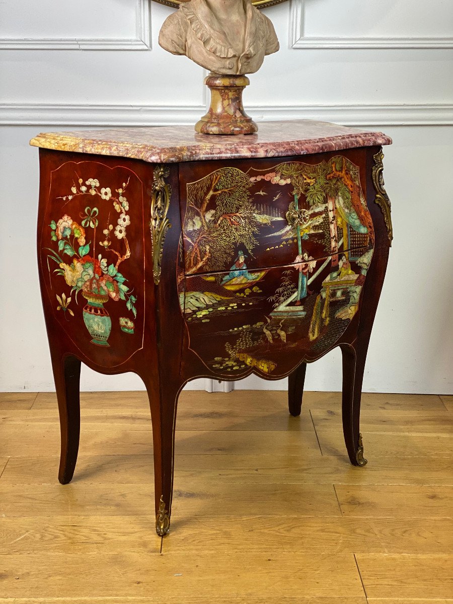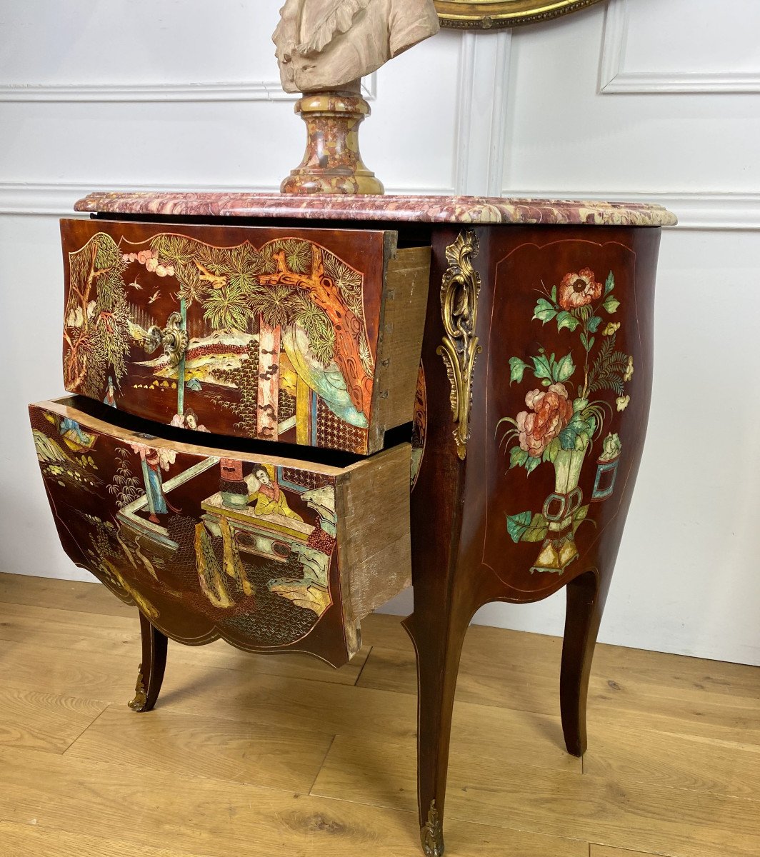 Commode Galbée En Laque De Coromandel Ornée De Bronze Doré Style Louis XV