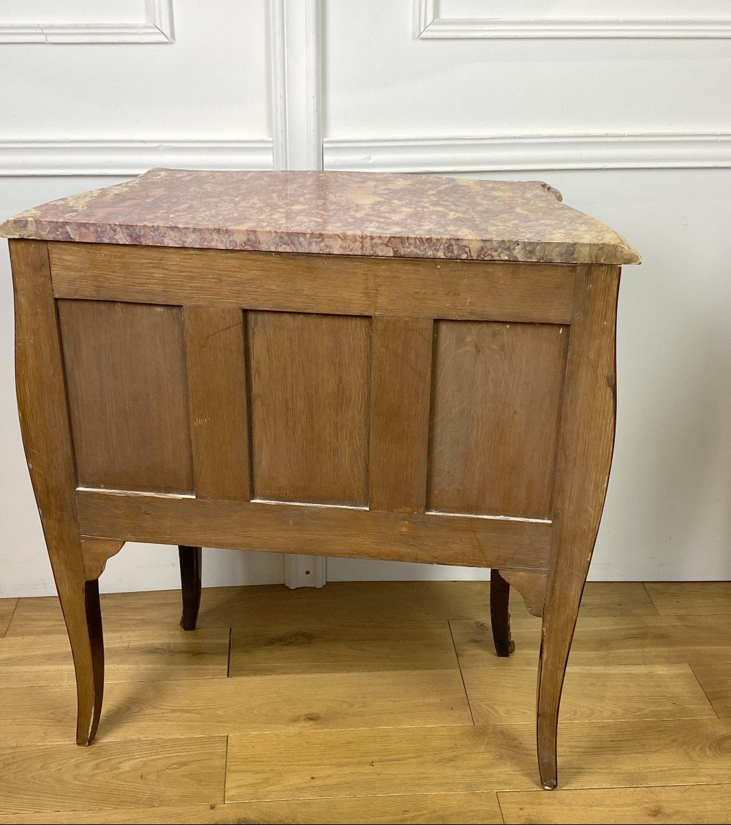 COMMODE GALBÉE EN LAQUE COROMANDEL DE STYLE LOUIS XV ORNÉE DE BRONZE DORÉ AVEC DESSUS MARBRE
