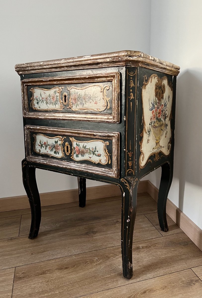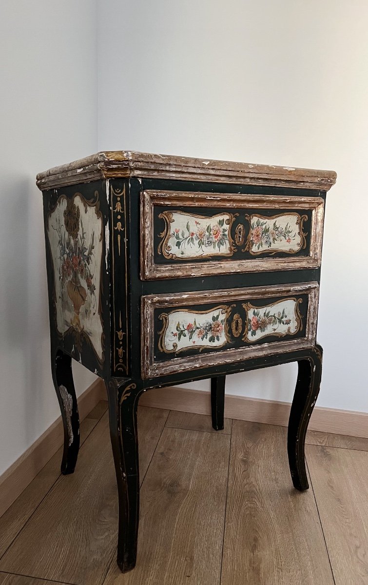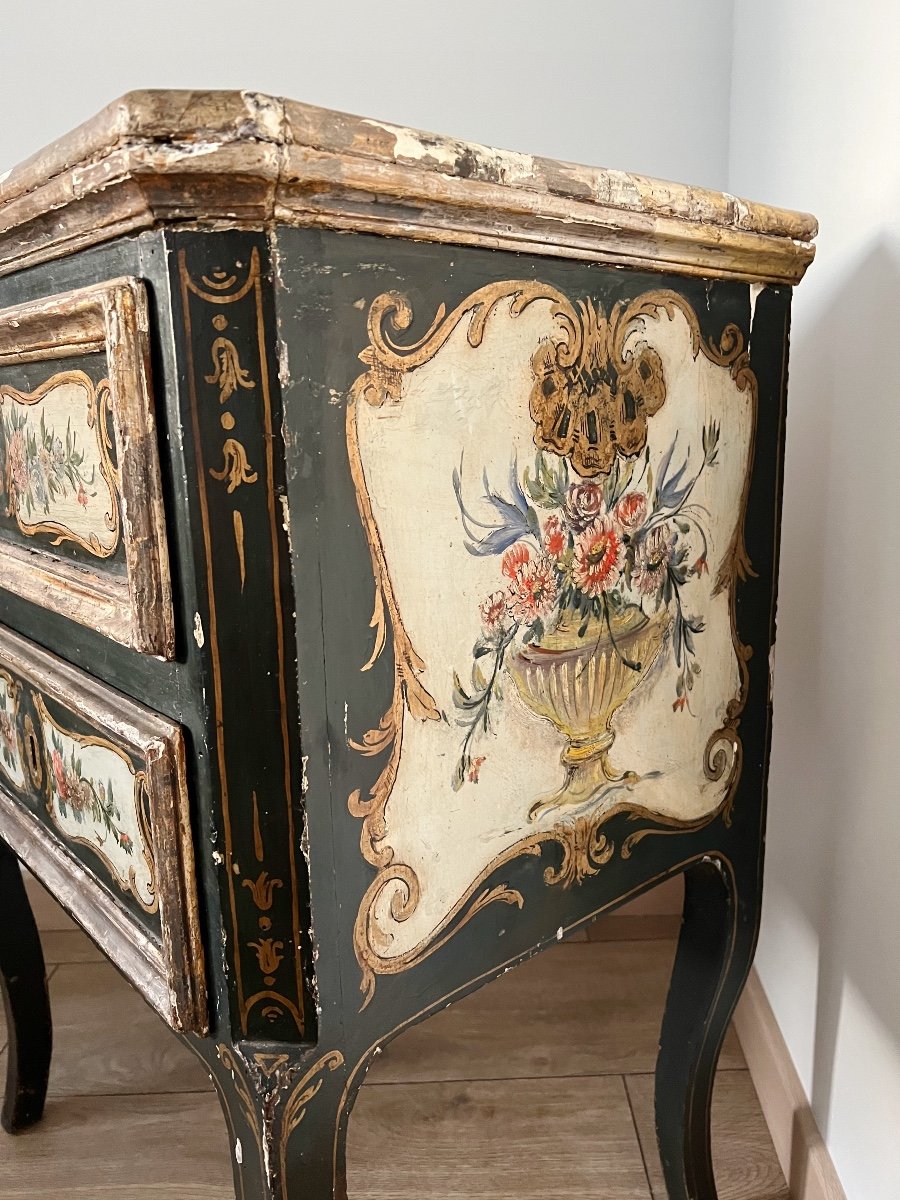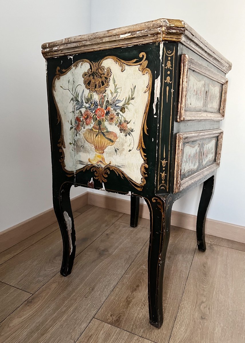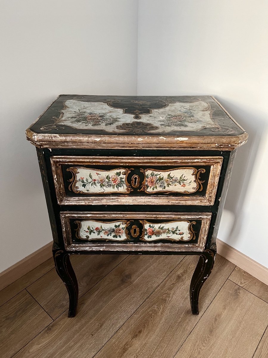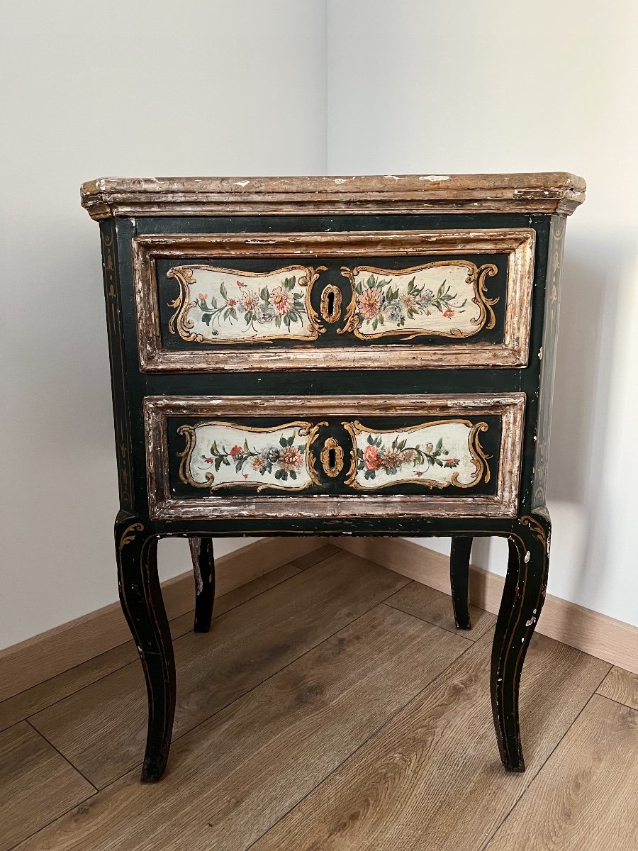 Commode Italienne Du XVIIIe En Bois Polychrome