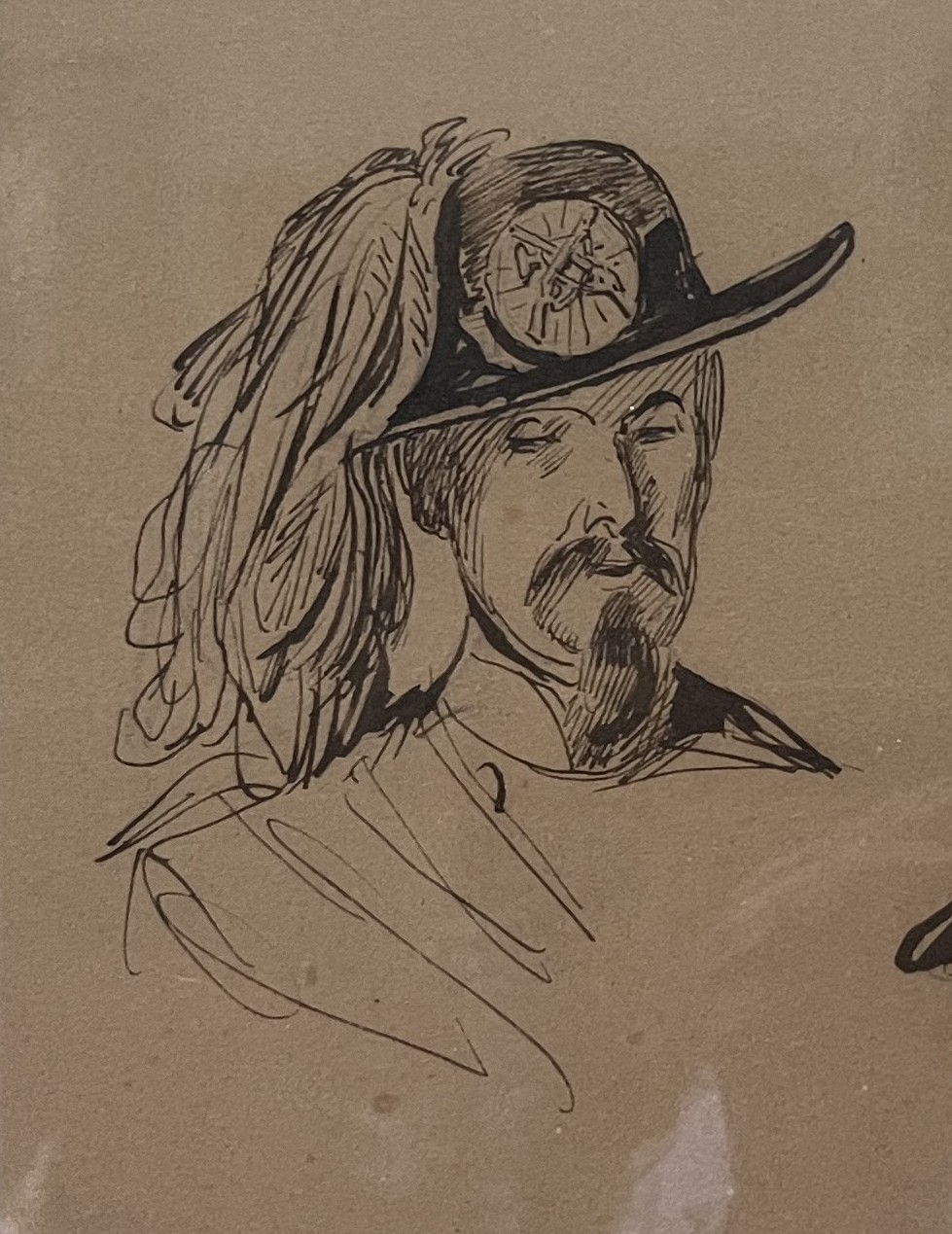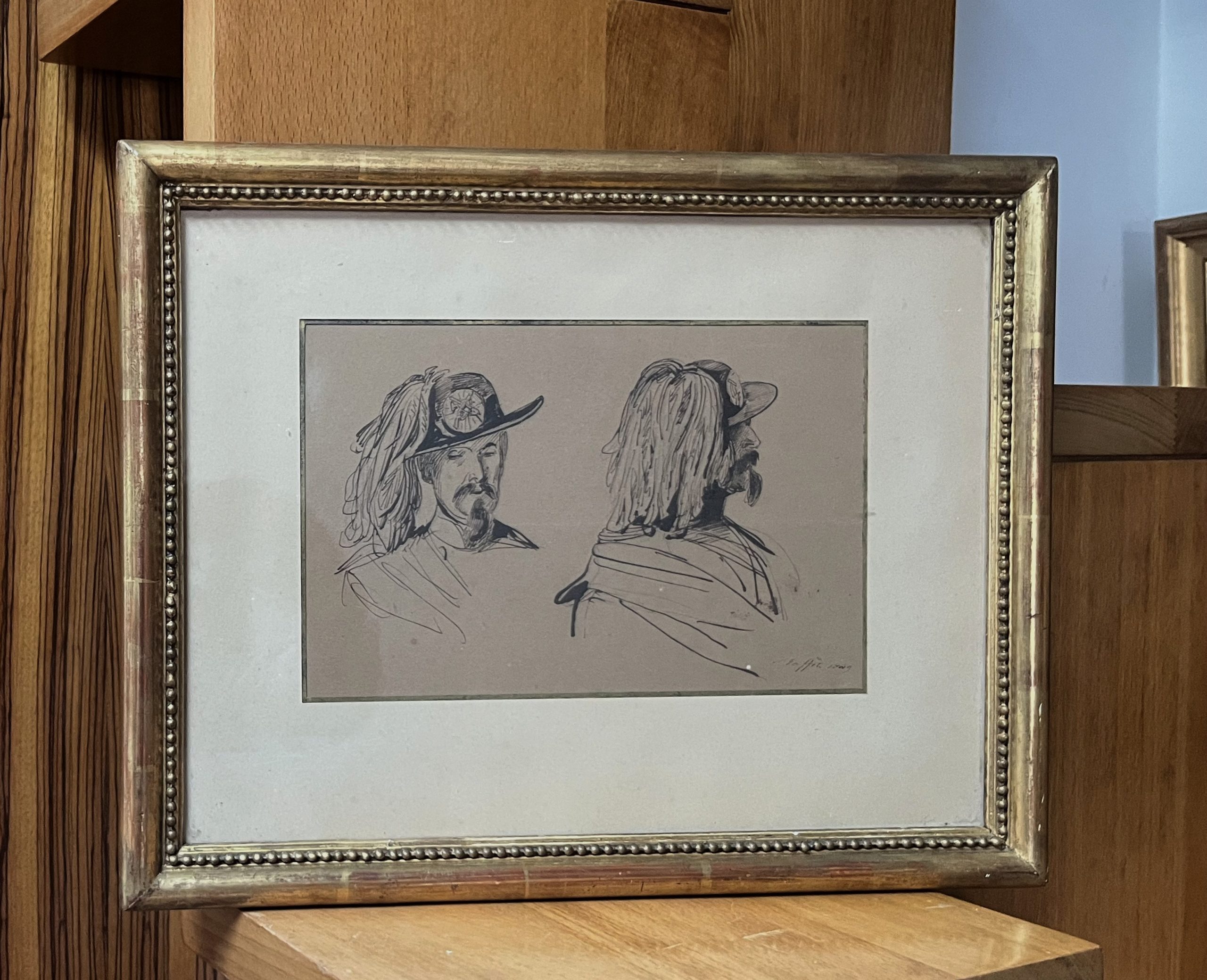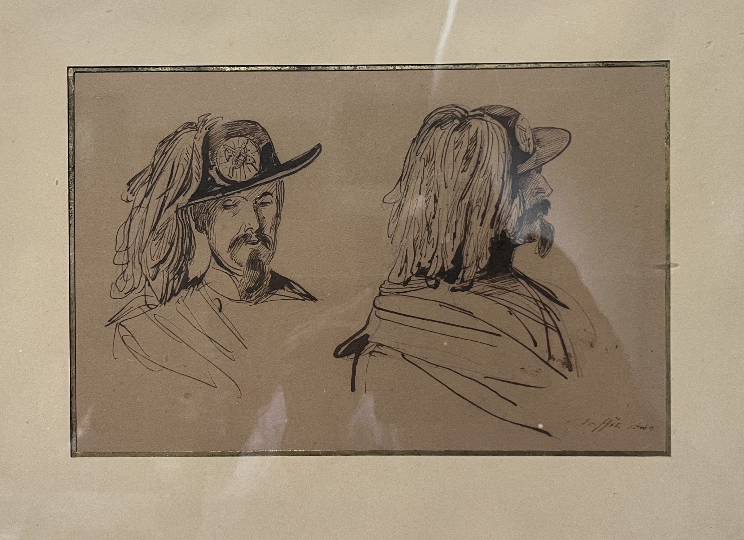 Raffet a eu l’occasion de dessiner des études de soldats autrichiens en participant en tant qu’observateur à la première guerre d’Indépendance italienne (1848-1849). C’était le premier de nombreux conflits entre le royaume de Sardaigne, qui devint plus tard le royaume d’Italie, et l’empire autrichien. Les Kaiserjäger (chasseurs impériaux) ont été fondés en 1815 par l’empereur François Ier. C’était un grand honneur d’entrer dans le corps des Kaiserjäger car ils étaient les seuls à être honorés du terme « impérial ». Toutefois, seuls les Tyroliens, les Voralbergers et les Welschtirolers étaient autorisés. Ils portaient ce chapeau caractéristique comme coiffe de parade, en feutre imperméable noir mat. Il se composait d’une couronne et d’un bord ornés d’un cordon vert circulaire, de l’emblème des Jäger et d’un panache de plumes de coq noir. Le cordon de chapeau était fait de laine de mouton et comportait un bouton et un gland recouvert de laine verte. Ces deux études évoquent clairement l’intérêt de l’artiste pour cette partie de son uniforme