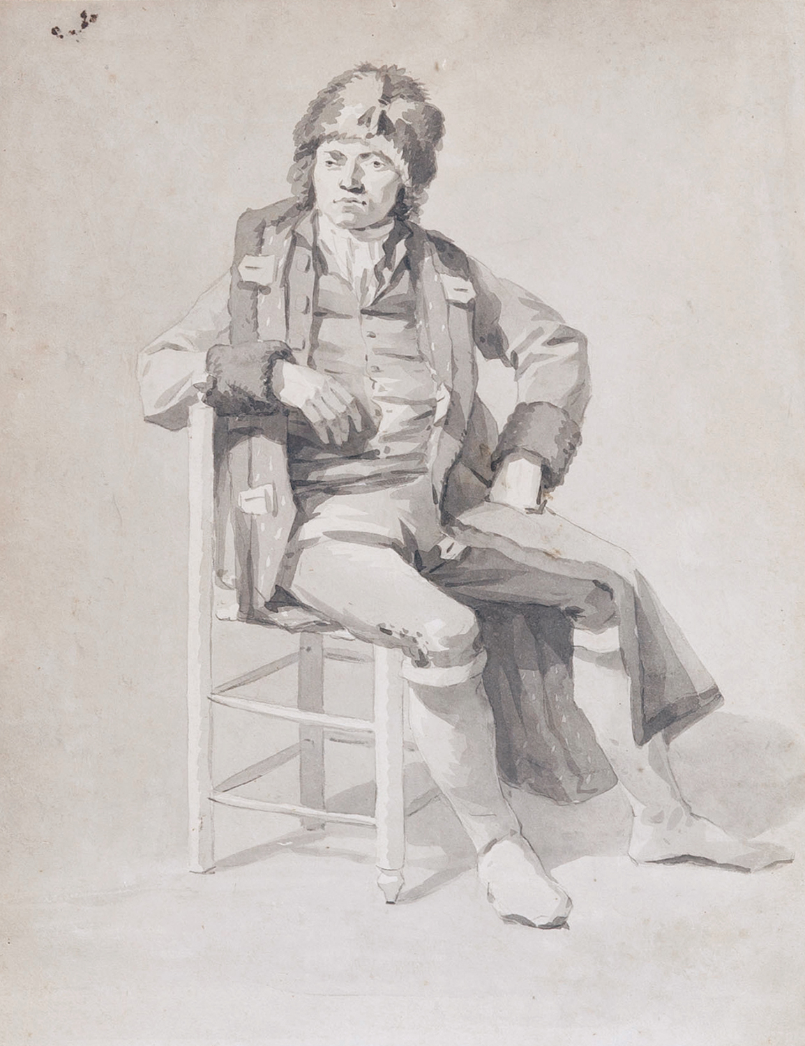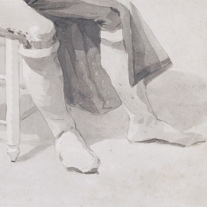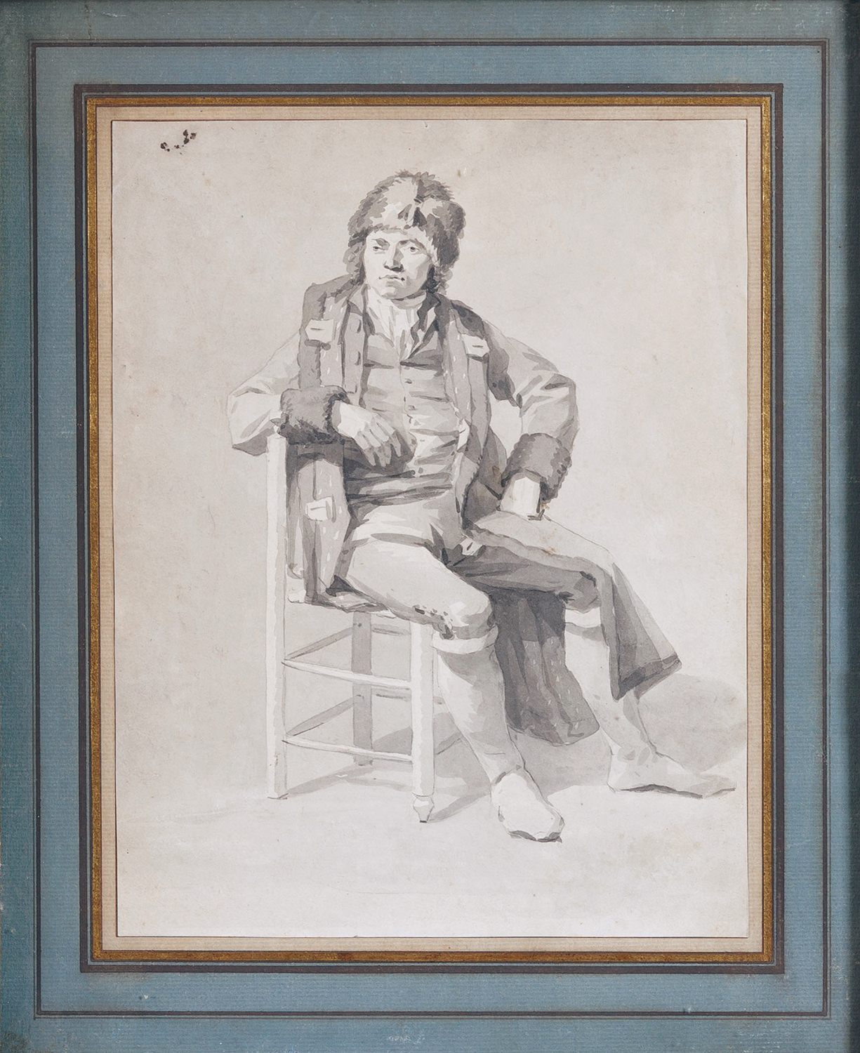 Ce dessin français du début du XIXe siècle, d’une grande force expressive, se distingue par sa présence et sa qualité peu communes. Réalisé dans un lavis gris raffiné, avec un modelé sûr et économique, il saisit l’intensité et la discipline intérieure d’une figure révolutionnaire avec une remarquable profondeur psychologique. La maîtrise de l’artiste apparaît dans la construction ferme du visage, l’architecture tonale maîtrisée et la clarté saisissante du caractère du modèle — autant d’éléments qui placent cette feuille bien au-dessus du niveau habituel de la production académique de l’époque.