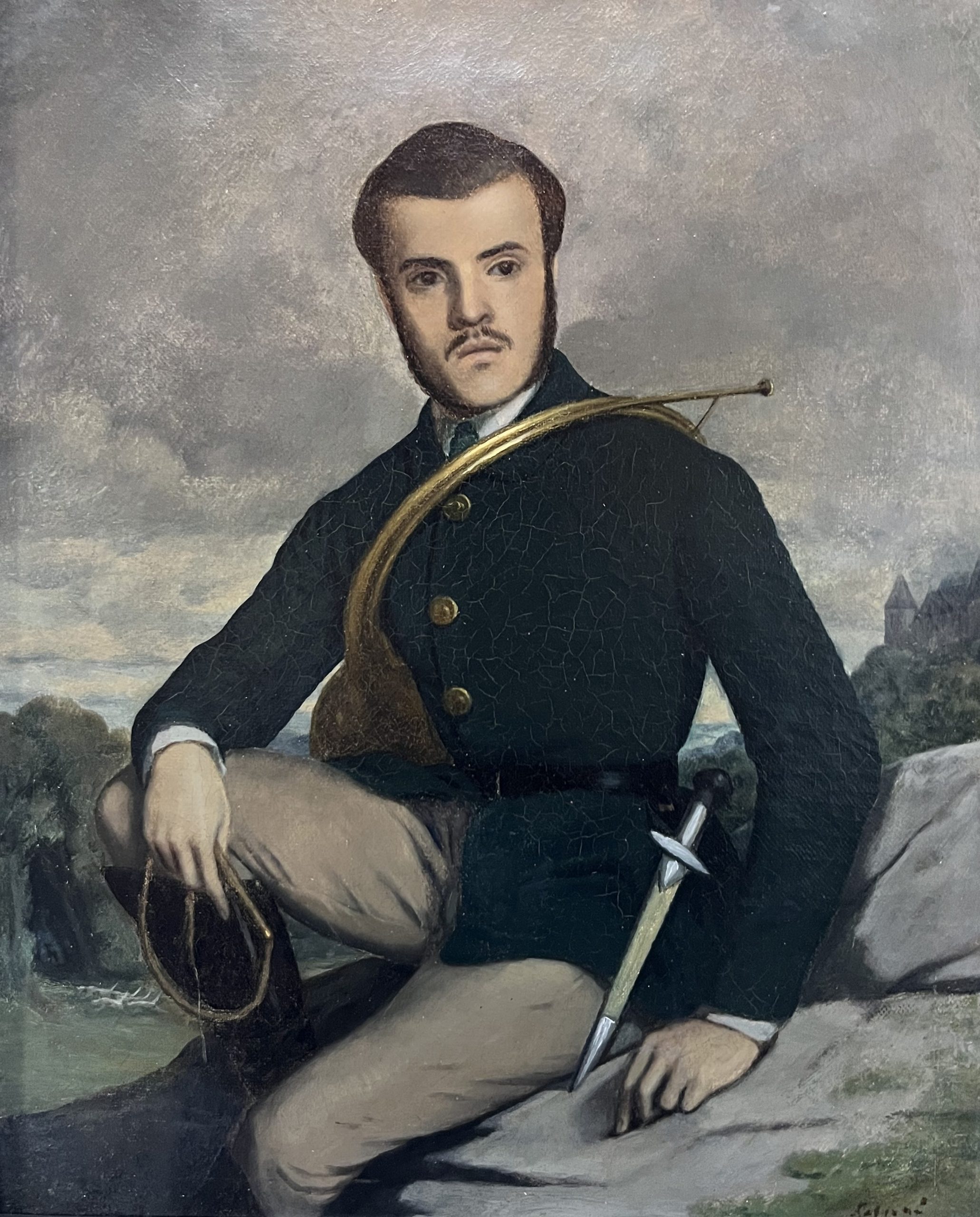 École française début XXe siècle, Portrait d’un chasseur, huile sur toile signée