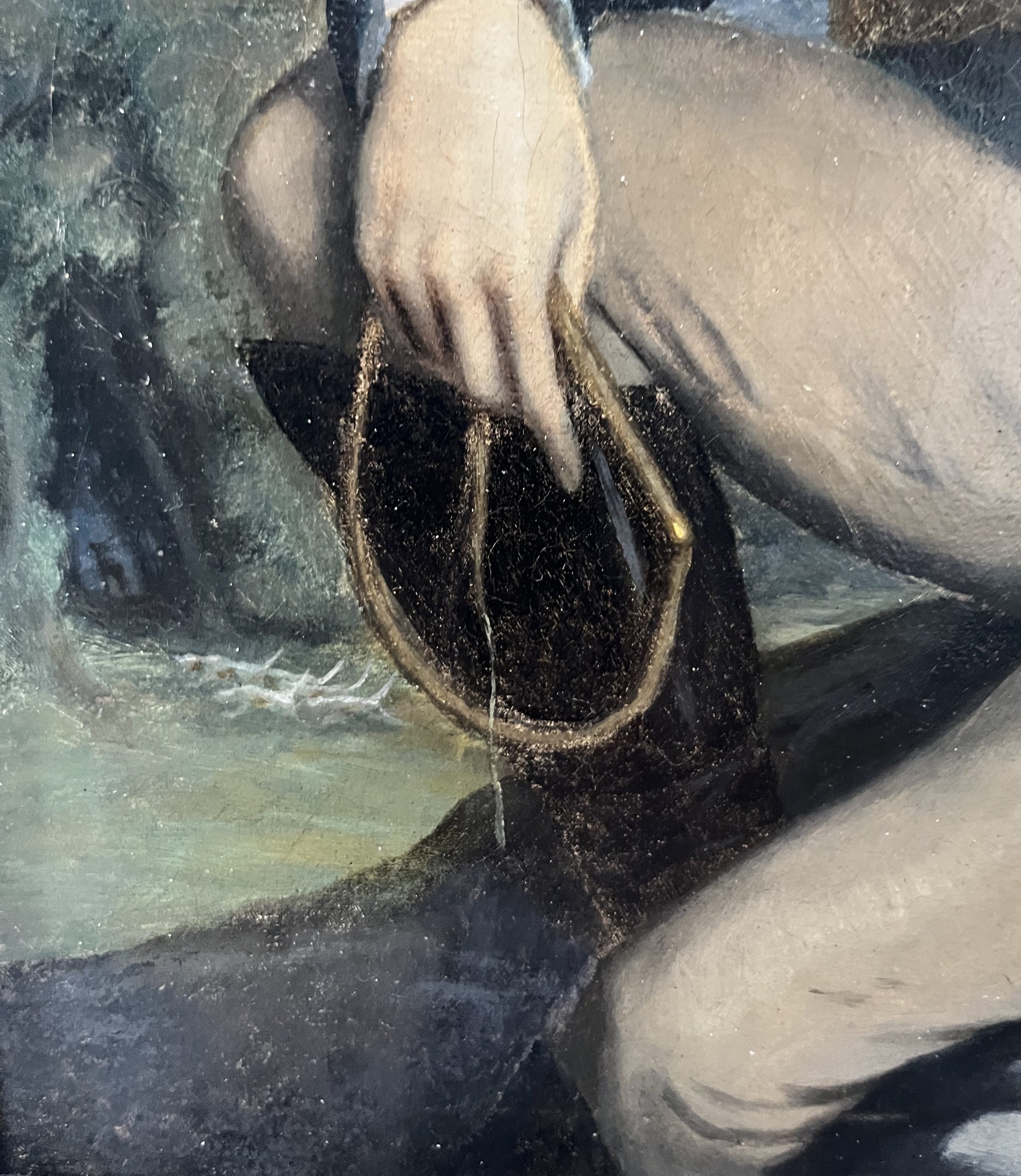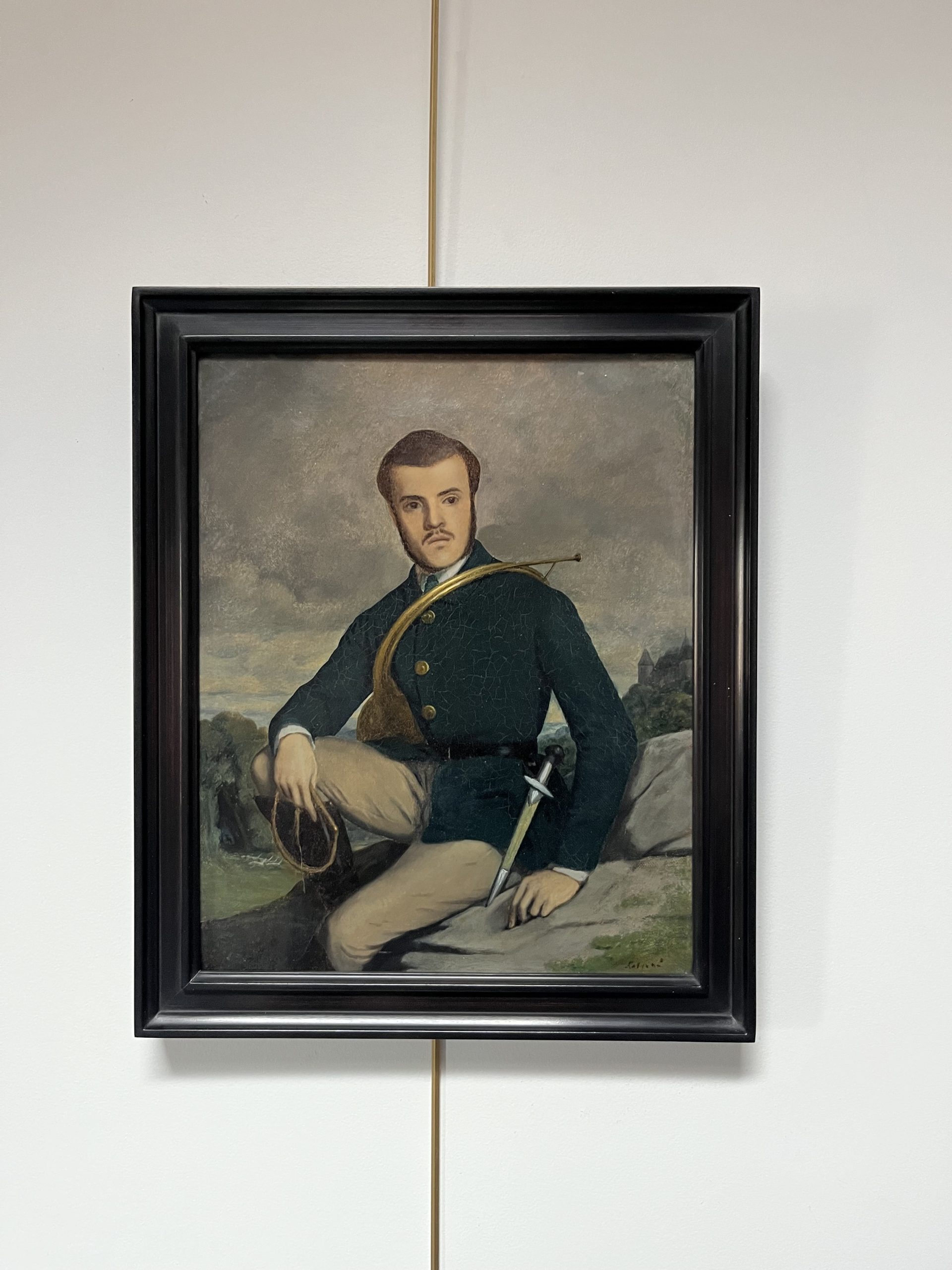 La signature ne fournit actuellement aucun indice sur l’identité de l’artiste et, comme elle est indéchiffrable, il est également difficile de donner une date exacte, sauf en se basant sur le style. Il est intéressant de noter que si le sujet — le portrait d’un chasseur — s’inscrit dans une tradition ancienne et classique, l’exécution et le style révèlent une modernité, notamment dans l’utilisation d’aplats de couleurs. Tout cela évoque le tournant du siècle, entre la fin du XIXe et le début du XXe siècle. Au cours de cette période, qui a vu la rencontre du symbolisme et de l’Art nouveau, l’évolution du classicisme vers la modernité était tout à fait concevable.