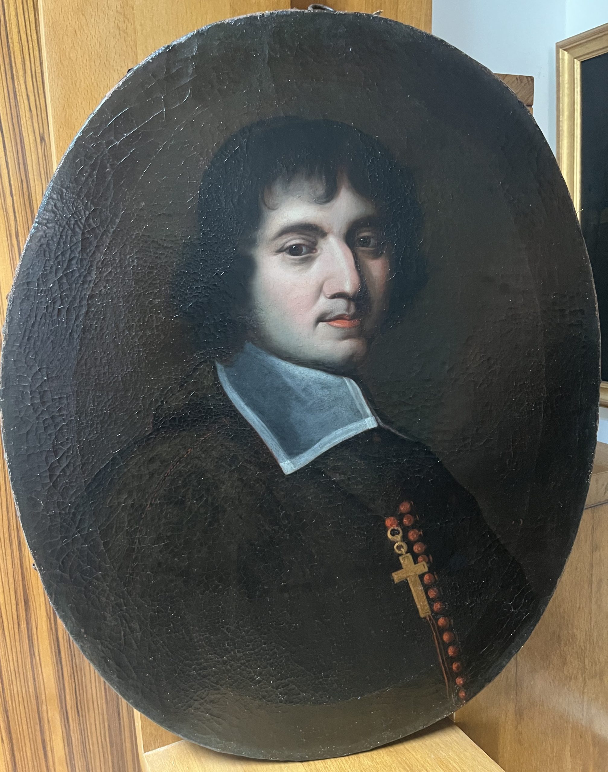 Ecole française du début du XVIIIe siècle, Portrait d’un ecclésiastique, huile sur toile ovale