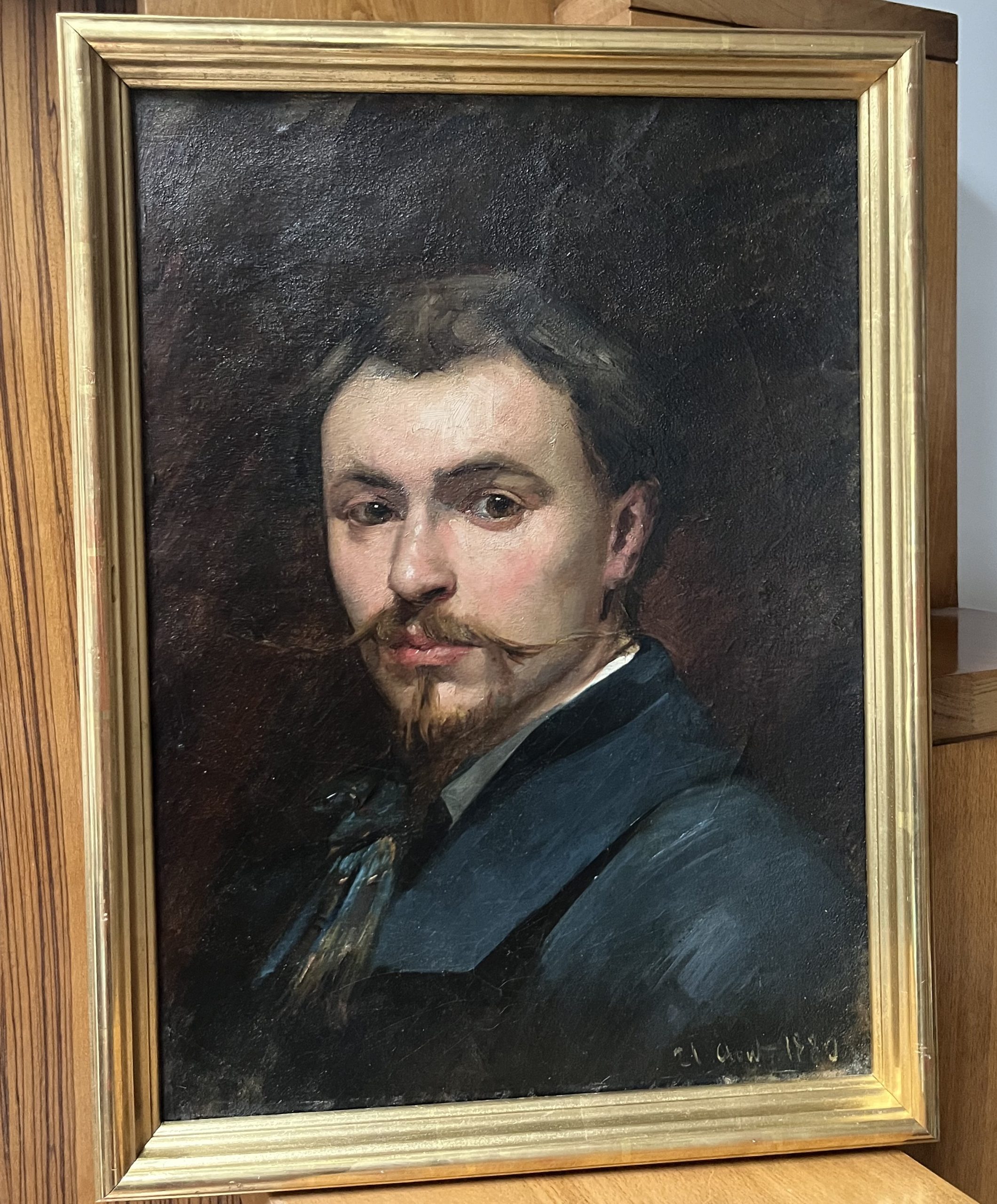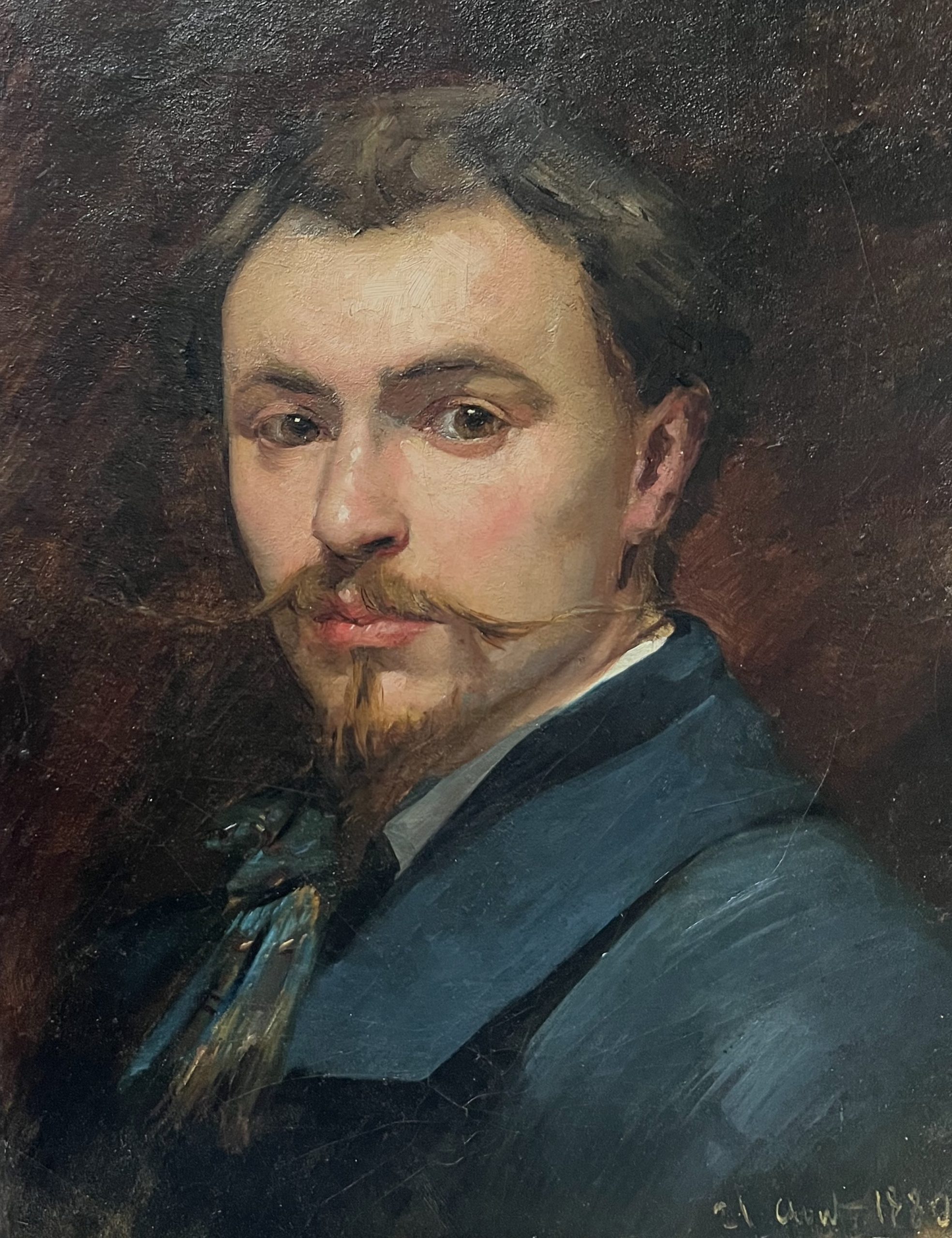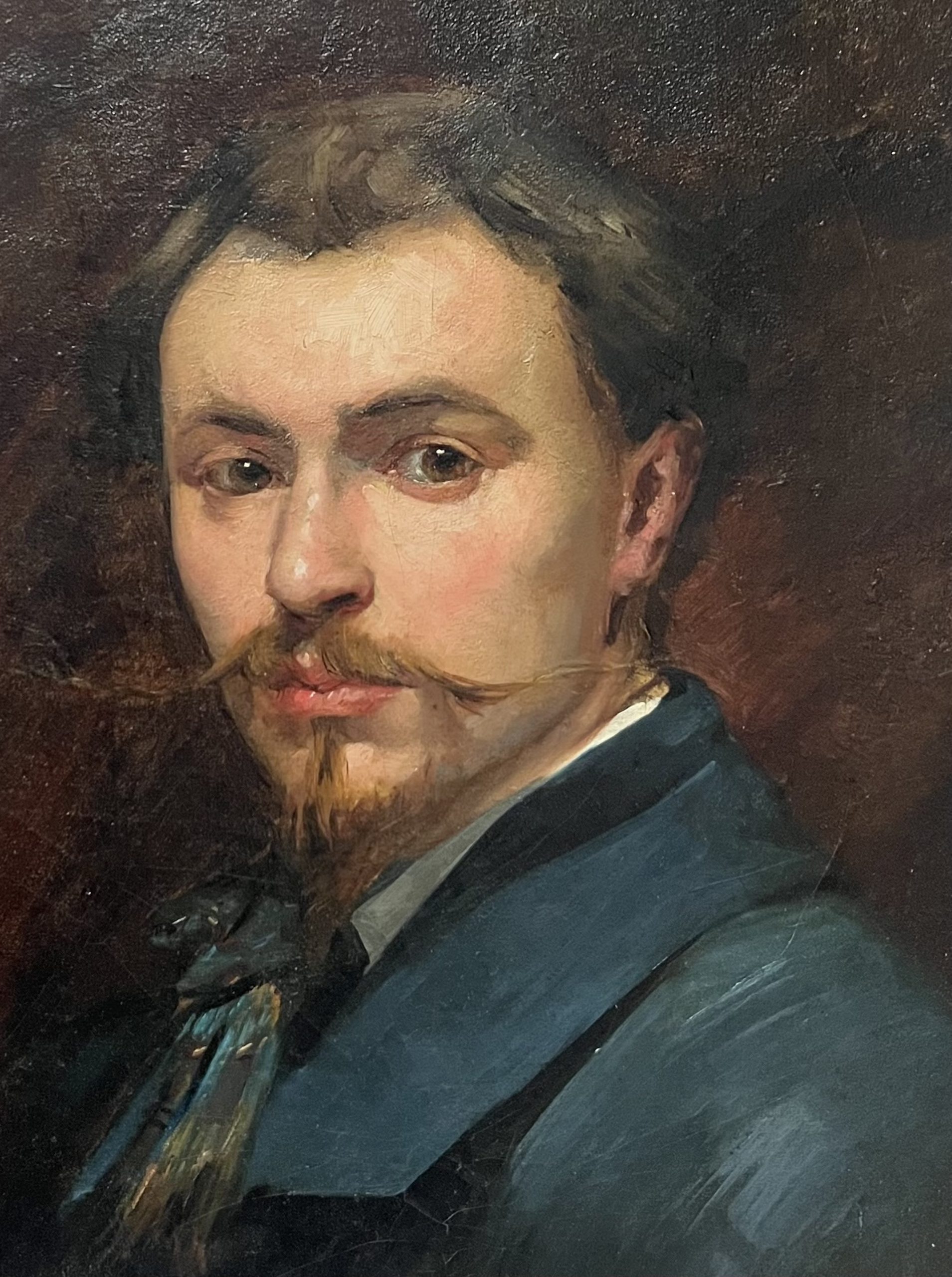 Ce beau portrait pourrait représenter un artiste, comme en témoignent sa moustache soigneusement taillée et sa cravate, rendues avec beaucoup de talent. Le caractère familier du modèle le laisse également supposer, comme si le peintre avait représenté l’un de ses amis.