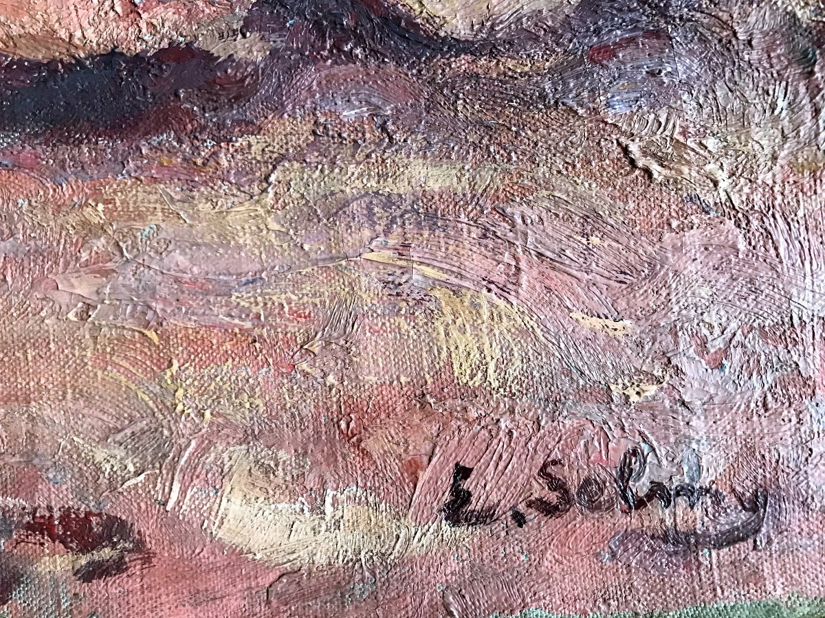 Huile sur toile encadrée par un cadre en bois sculpté Montparnasse. Signature en bas à droite: E. Selmy.