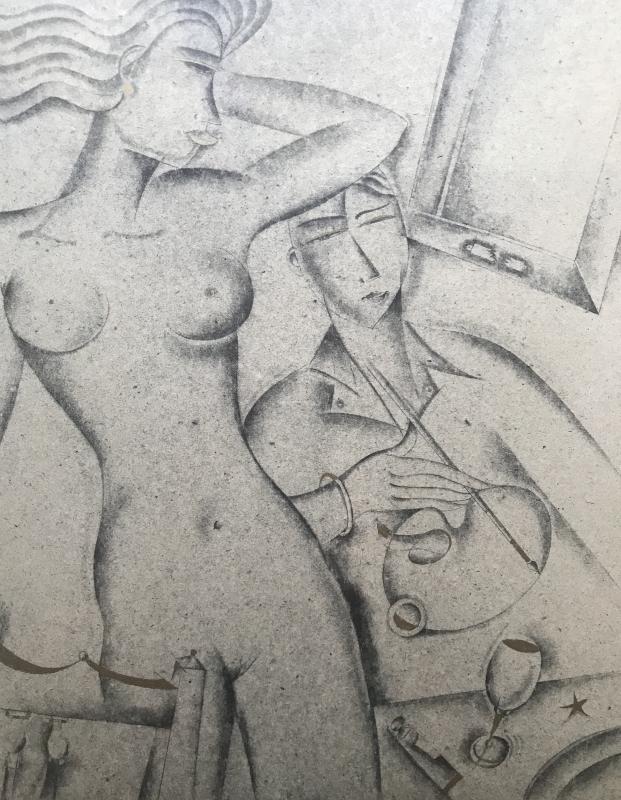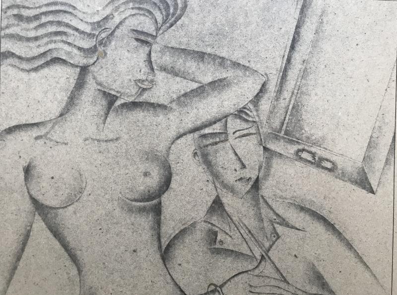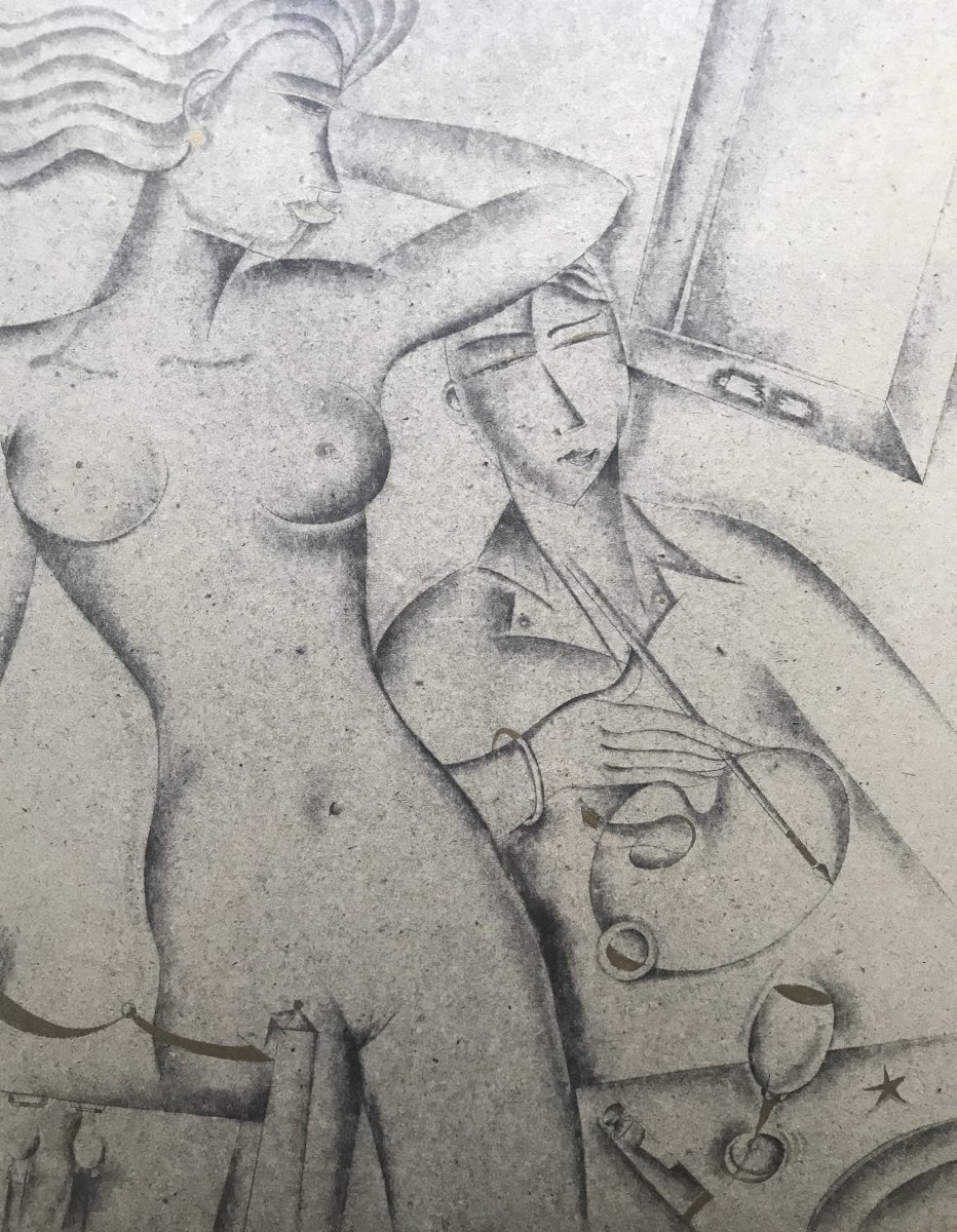 Signature en bas à droite: Ferdinand Pire-Ferdinand. Inscription en bas à gauche: « Le peintre et son modèle »