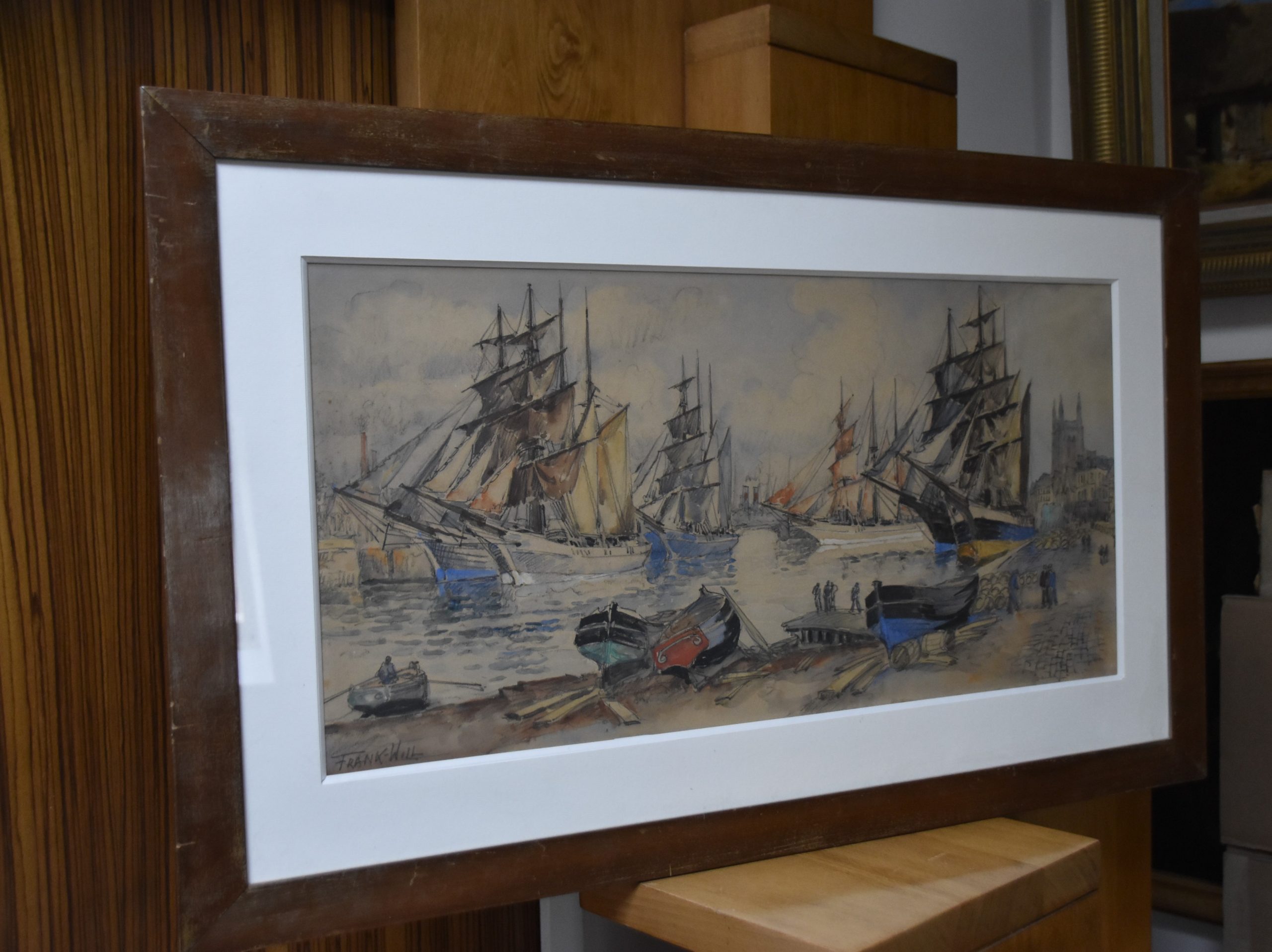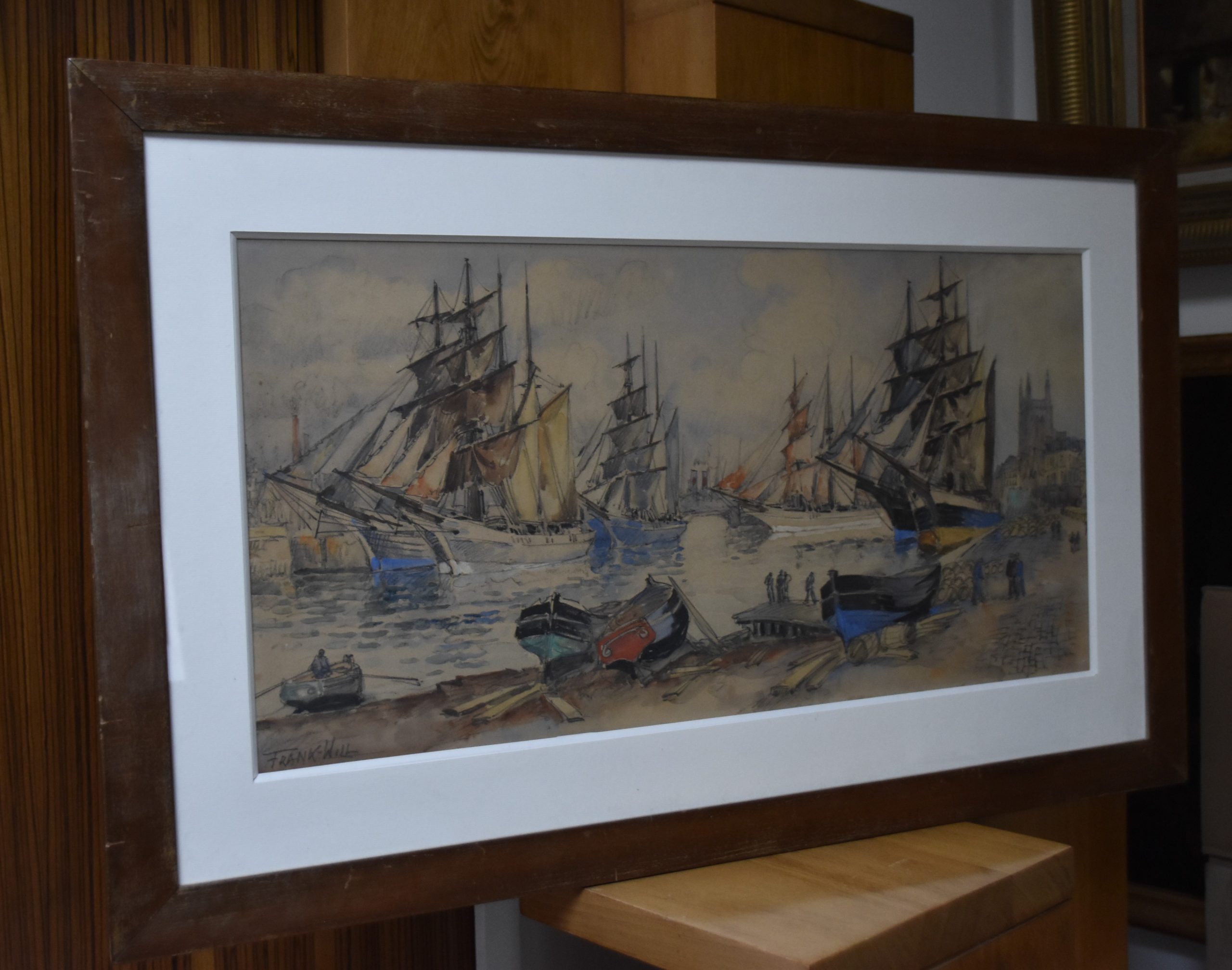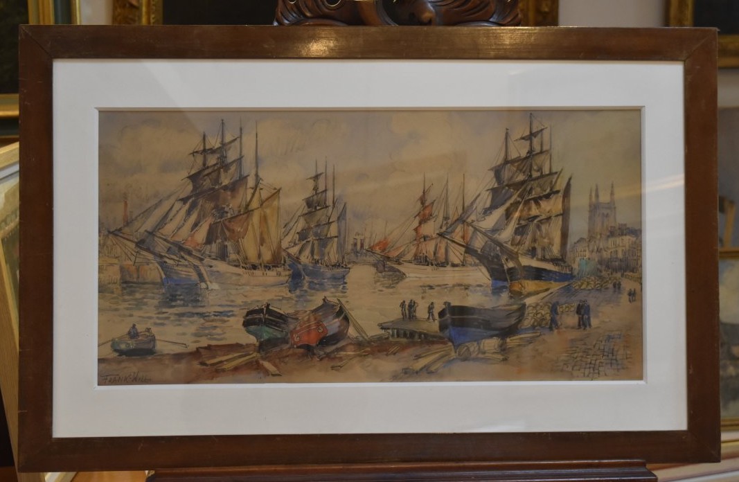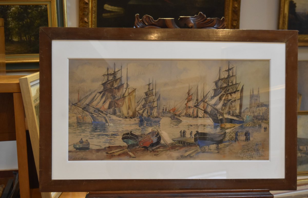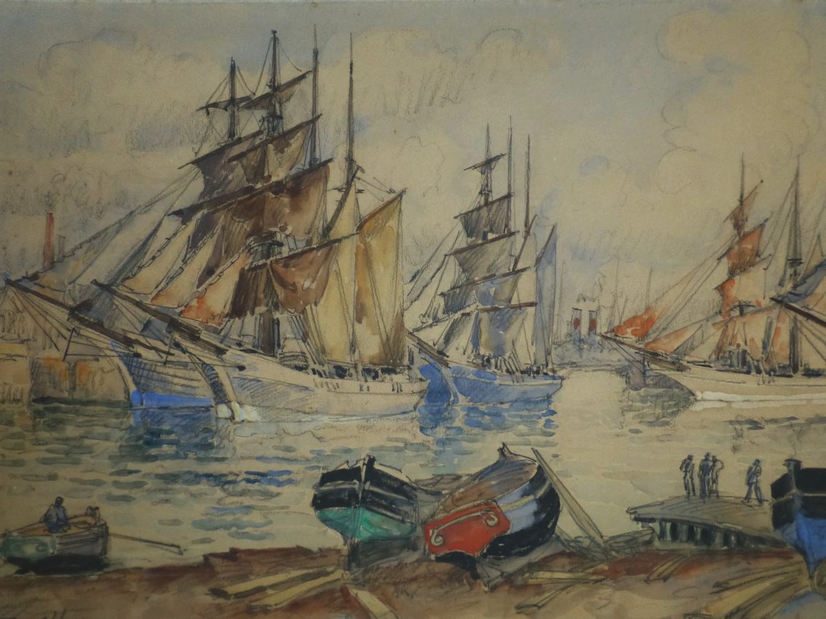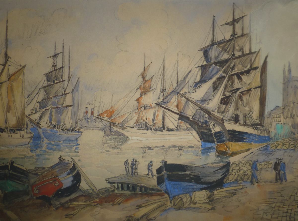 Frank Will (1900-1950) Grand Port Aux Trois Mats, Fécamp, grande aquarelle