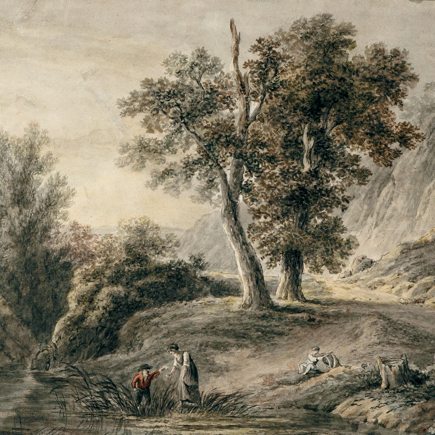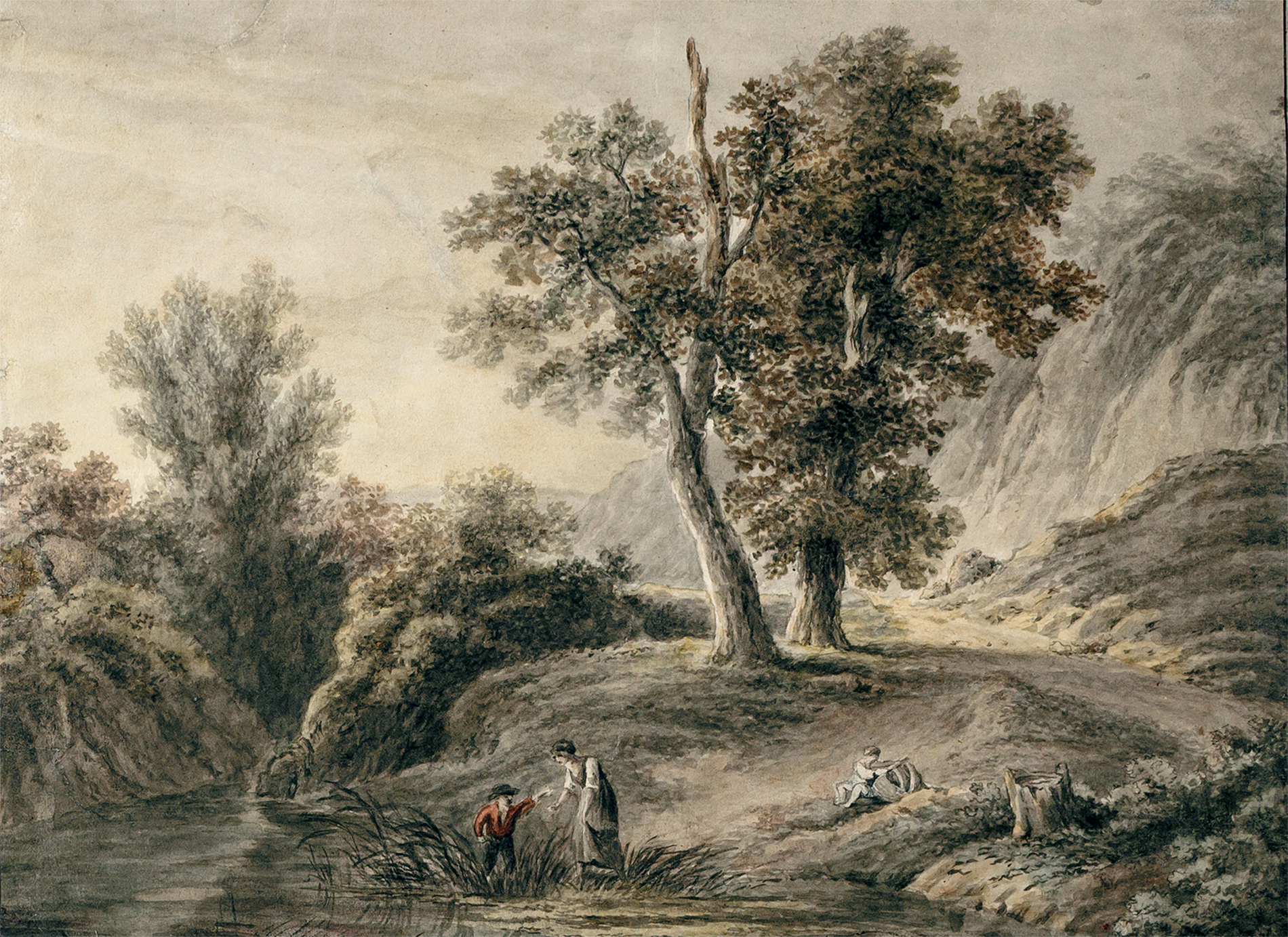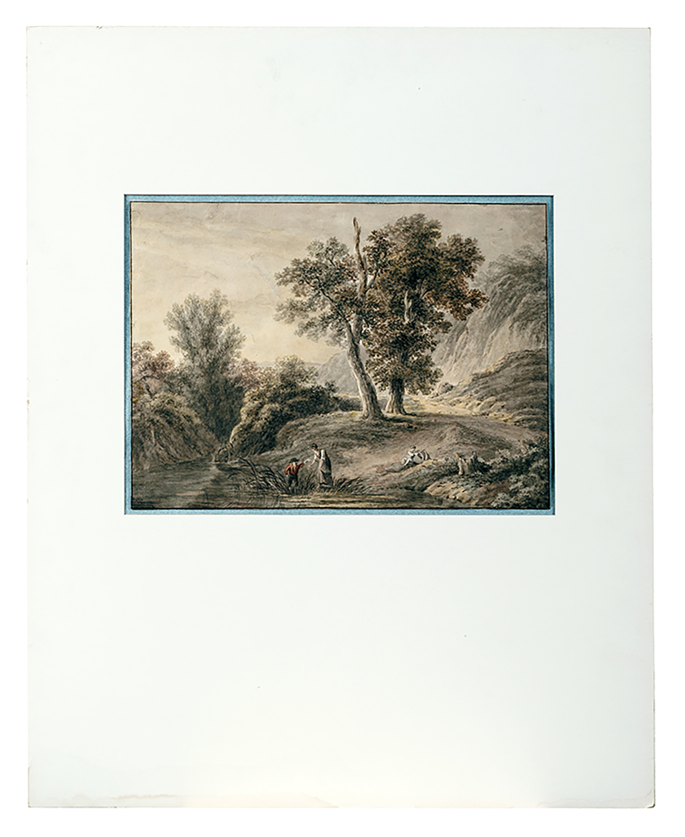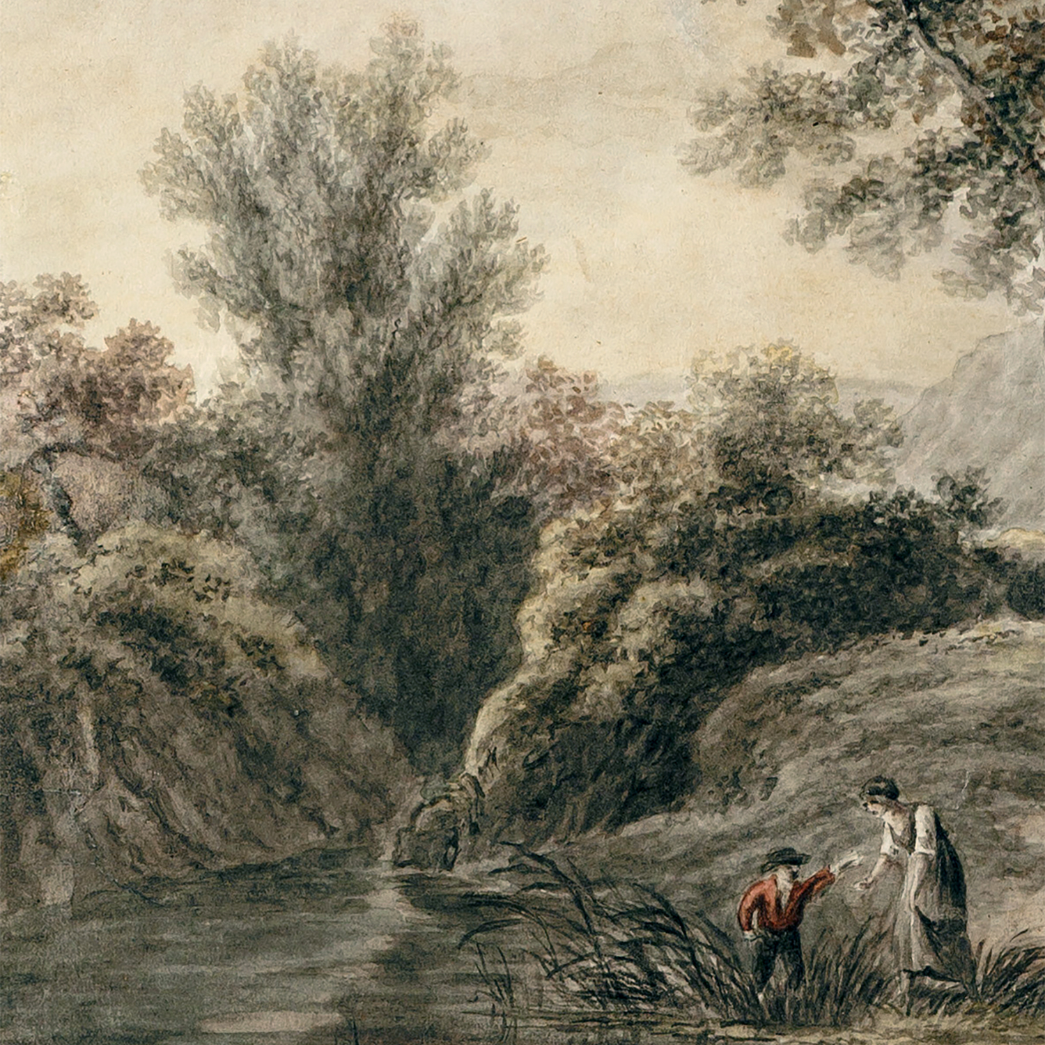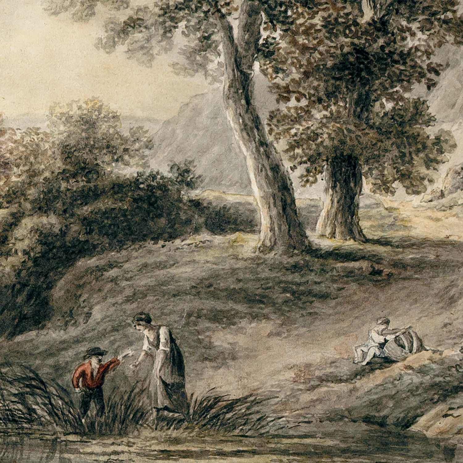 PAYSAGE AVEC PERSONNAGES PRÈS D’UN ÉTANG