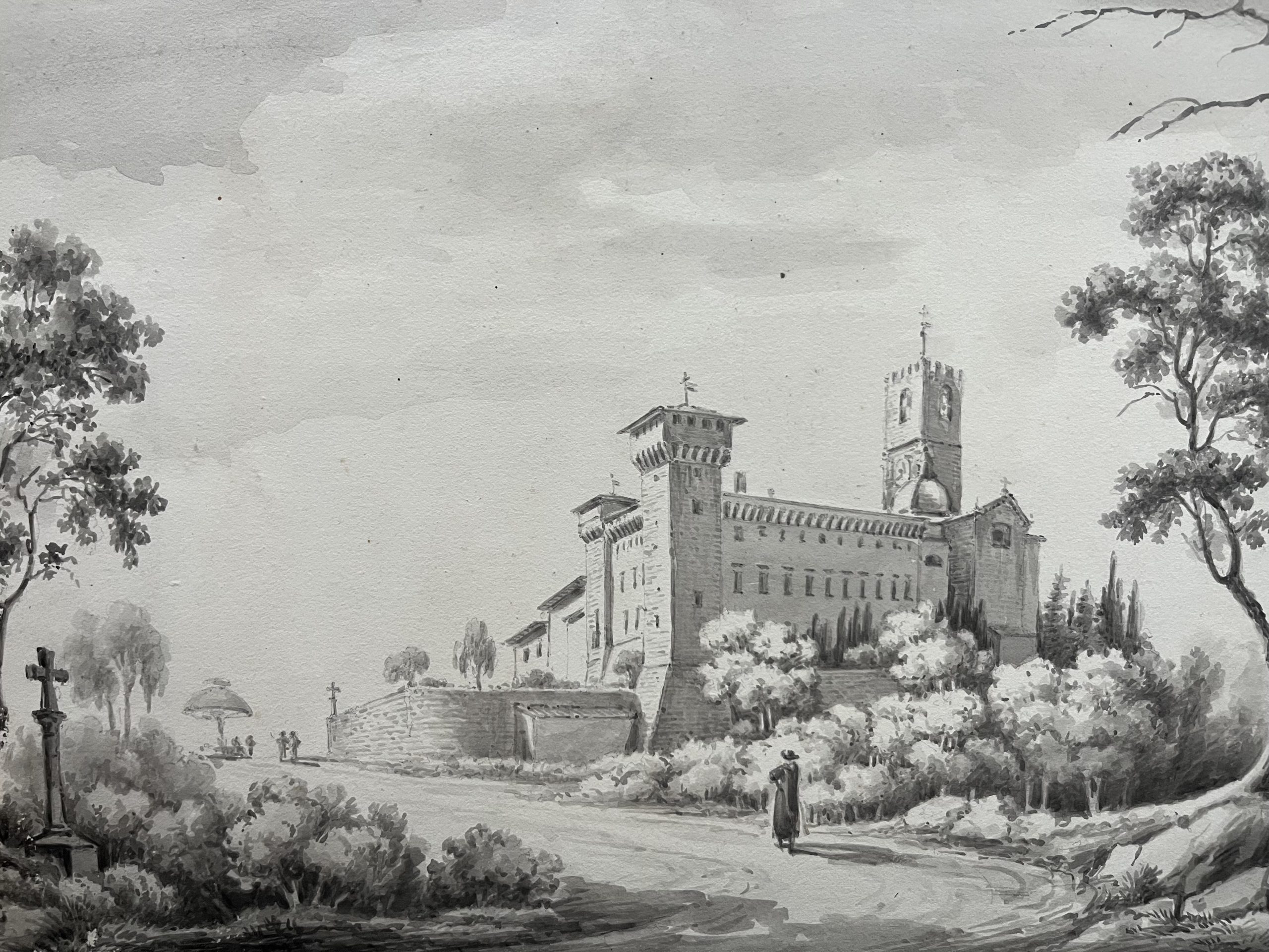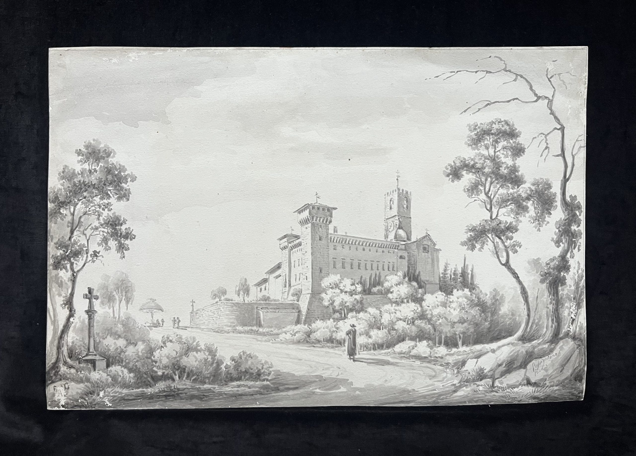Giuseppe Ghirardi (1788-1884) Badia di Passignano, 1866, encre et lavis d’encre