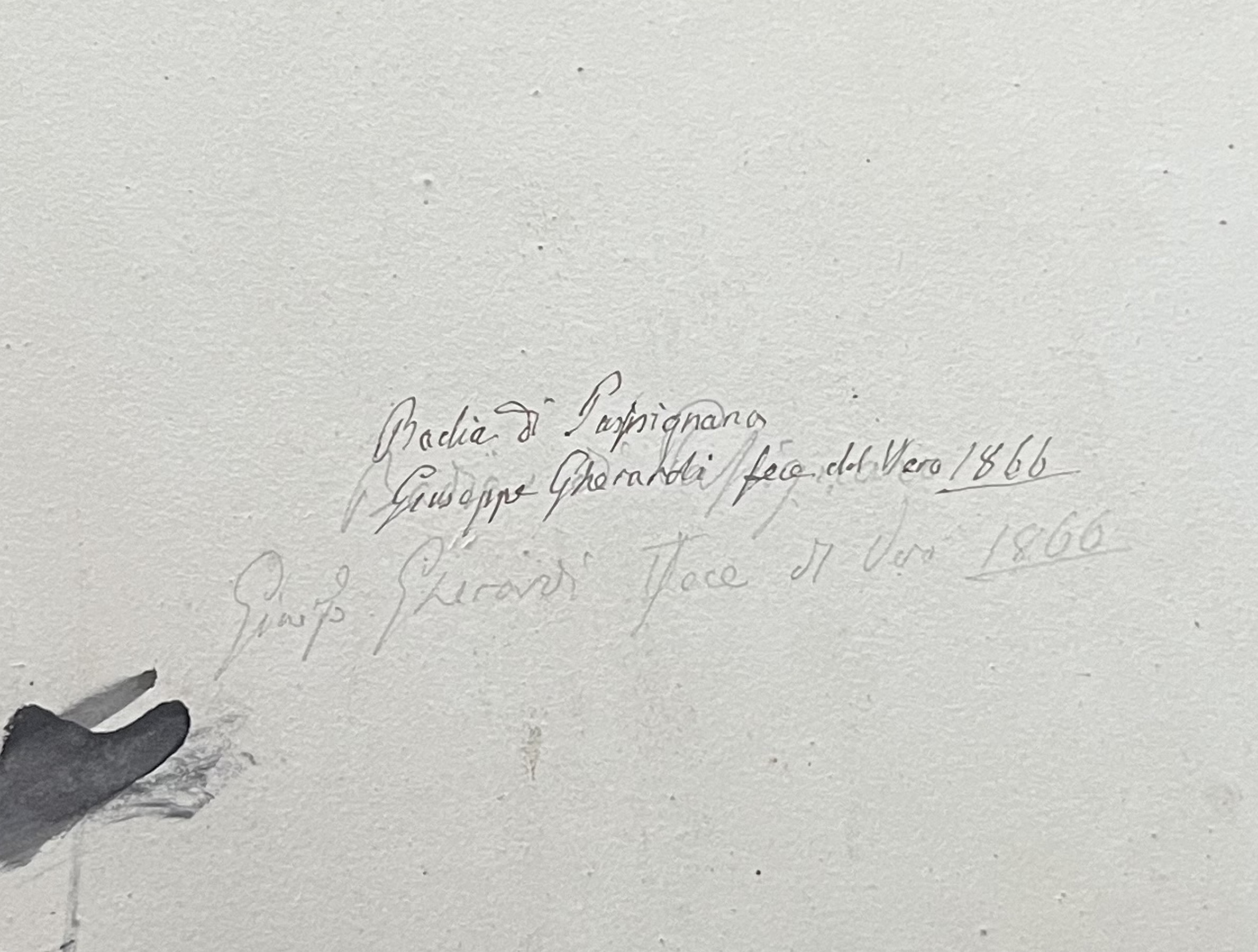 au dos la mention « Badia di Passagnano, Giuseppe Gherardi fece del vero 1866 »