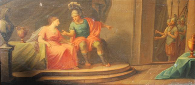 Grande huile sur toile de forme rectangulaire représentant les Adieux d’Hector et d’Andromaque.