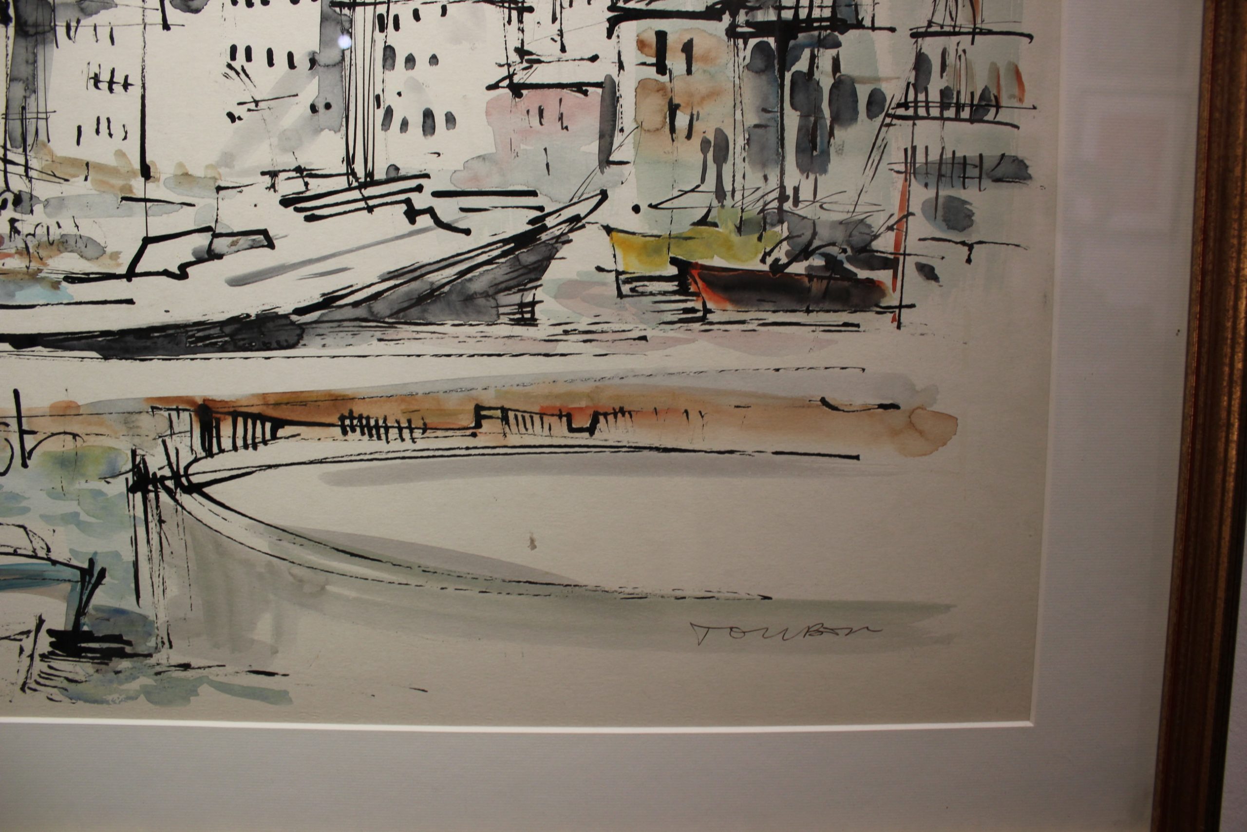 AQUARELLE ET PLUME DE GUY TOUBON CELEBRE MARSEILLAIS