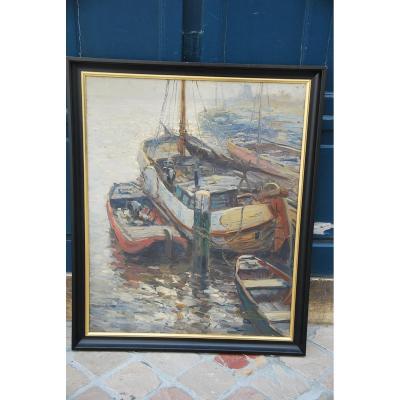 Huile Sur Toile : les Barques Signée De Kees Terlouw