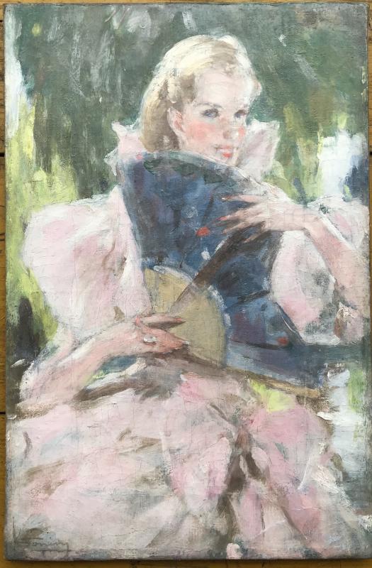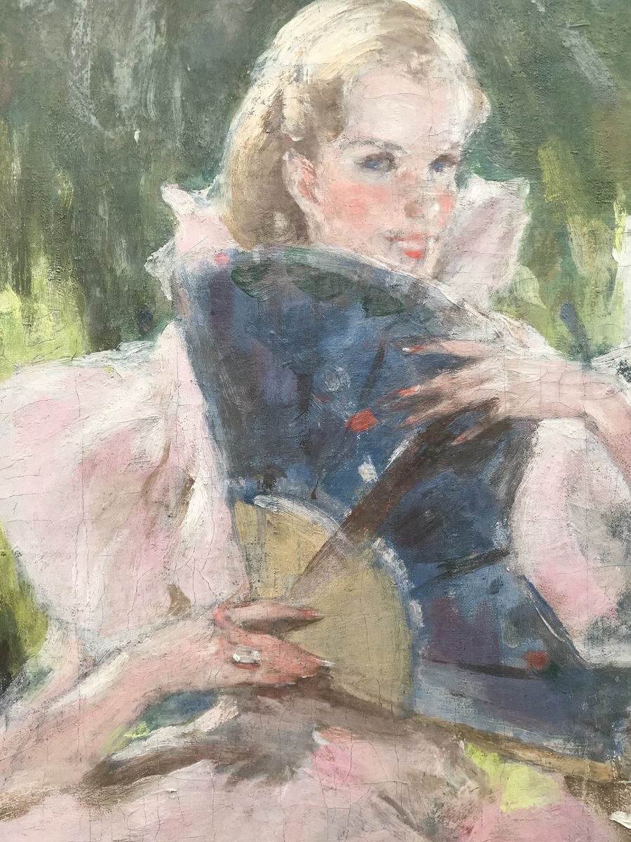 Jacques Fernand Gonin (1883- ? ) Jeune Femme à l’éventail Début XX Siècle