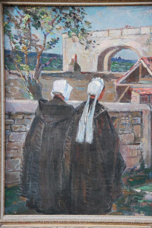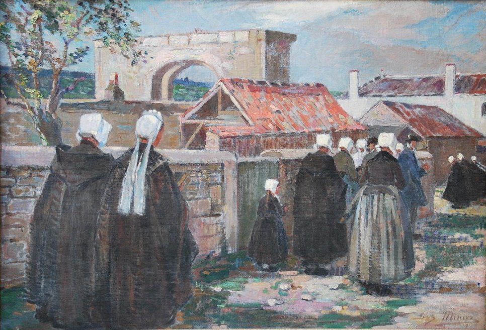 Belle et grande représentation , belle facture , avec un parti pris intéressant avec la posture des personnages, les femmes portent la coiffe traditionnelle de l ile de Ré , la fameuse Guichenotte ! , coiffe traditionnelle des Charentes et du Poitou ; portée à l ile de Ré par les éleveuses d huitres pour protéger du soleil.