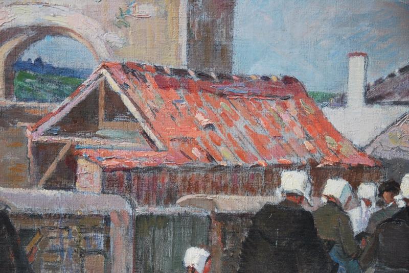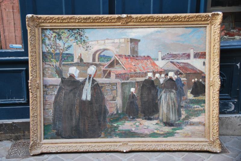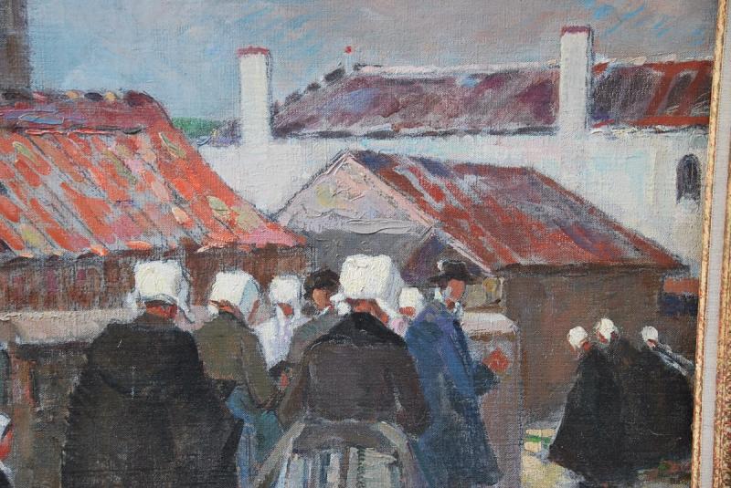 Grande et belle huile sur toile représentant une scène de genre située à l ile de Ré , plus précisément Saint Martin.