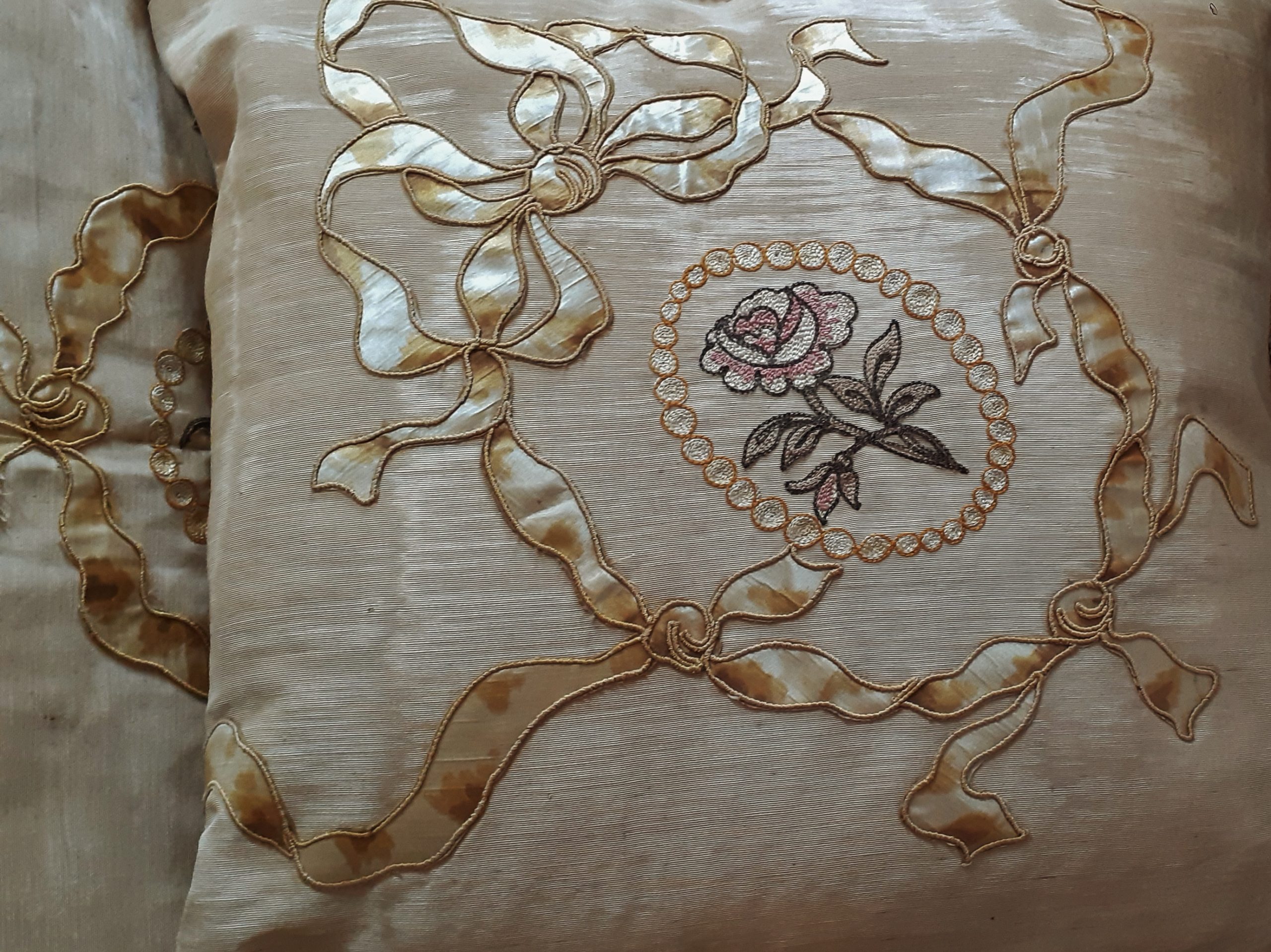 Garniture de damas de soie pour les tentures et taffetas moiré brodé de fleurs pour le dessus de lit – Doublure coton –