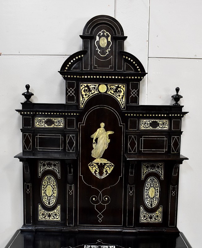 Rare meuble d’Apparat aux nombreuses Marqueteries d’Ivoire, sur fond de Poirier Noirci, typique de l’époque Napoléon III.