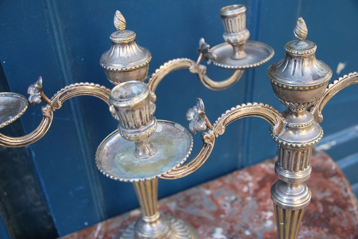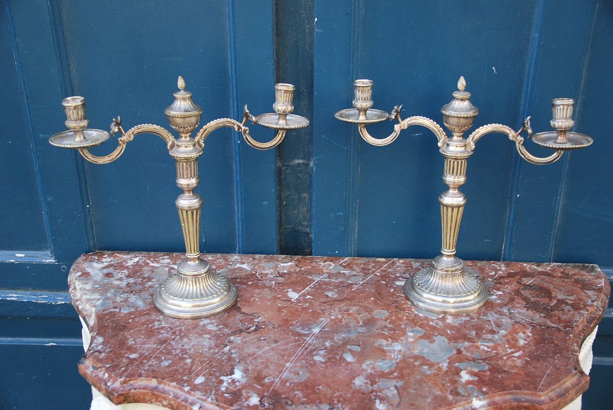 Paire De Candélabres En Bronze Argenté XVIII Suède