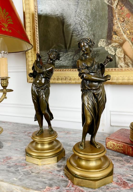 Paire De Sujets En Bronze d’époque Napoléon III Représentant Deux Femmes à l’ Antique – XIXe